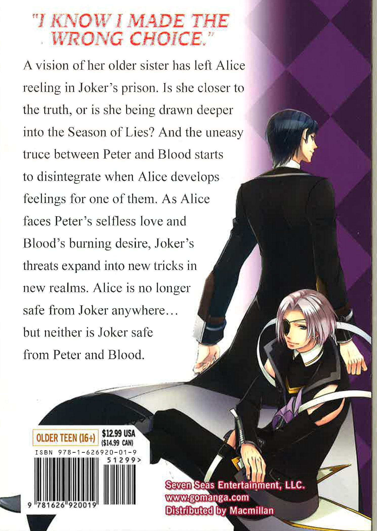 Alice in the Country of Joker: Circus and Liar's Game continues the adventures of Alice as she goes deeper down the rabbit hole to the country of Joker. Each volume features impressive artwork by Mamenosuke Fujimaru, the same artist for Alice in the Country of Clover, and includes colour pinups. Alice Liddel has now entered a new realm - the country of Joker - where she is reunited with old friends. Yet new challenges abound, as Alice must unravel the mystery of the Circus and the Prison Realm, and deal with the enigmatic Jokers.