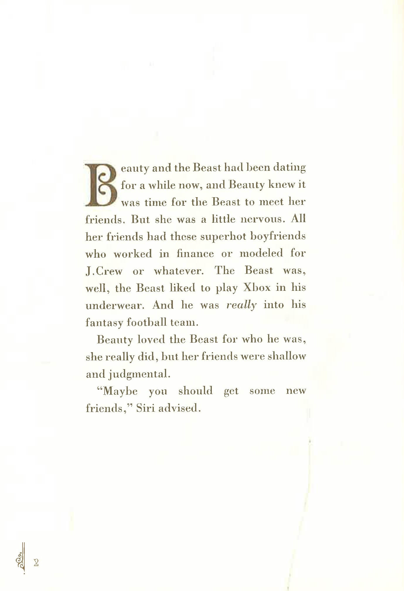 The Ugly Duckling still feels gross compared to everyone else, but now she's got Instagram, and there's this one filter that makes her look awesome. Cinderella swaps her glass slippers for Crocs. The Tortoise and the Hare Facebook stalk each other. Goldilocks goes gluten free. And Peter Pan finally has to grow up and get a job, or at least start paying rent. Here are more than one hundred fairy tales, illustrated and re-imagined for today. Instead of fairy godmothers, there's Siri. And rather than big bad wolves, there are creepy dudes on OkCupid. In our brave new world of social networking, YouTube, and texting, fairy tales can once again lead us to "happily ever after"--and have us laughing all the way.