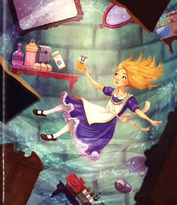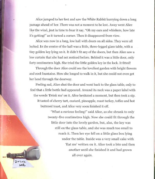 Alice's in Wonderland is tells of a girl named Alice who falls down a rabbit hole into a fantasy world populated by peculiar, anthropomorphic creatures. The tale plays with logic, giving the story lasting popularity with adults as well as with children.It is considered to be one of the best examples of the literary nonsense genre.Its narrative course and structure, characters and imagery have been enormously influential in both popular culture and literature, especially in the fantasy genre.