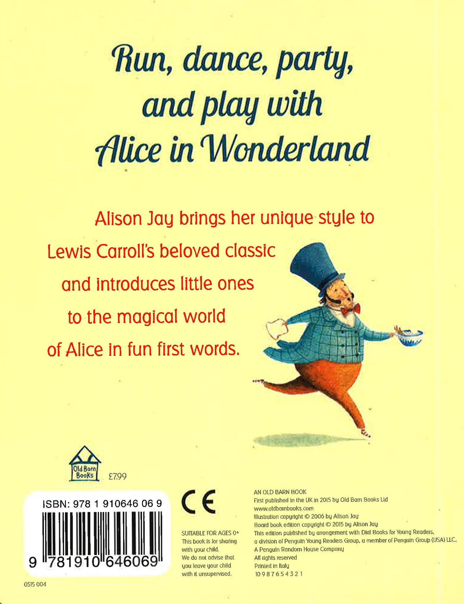 This beautiful book is the perfect first introduction to Alice. Alison Jay's unique crackle-glazed style deftly captures Carroll's well-loved characters and will entertain babies and toddlers as she races through the story in a verb per page ('drink' / 'shrink'; 'eat' / 'grow'). Alice, the White Rabbit, the Cheshire Cat and the Mad Hatter are all represented here. The board book encapsulates the zany other-worldness of Carroll's novel.