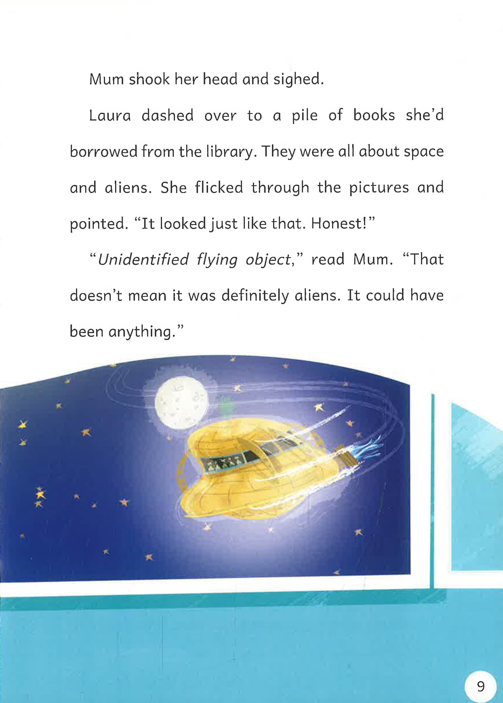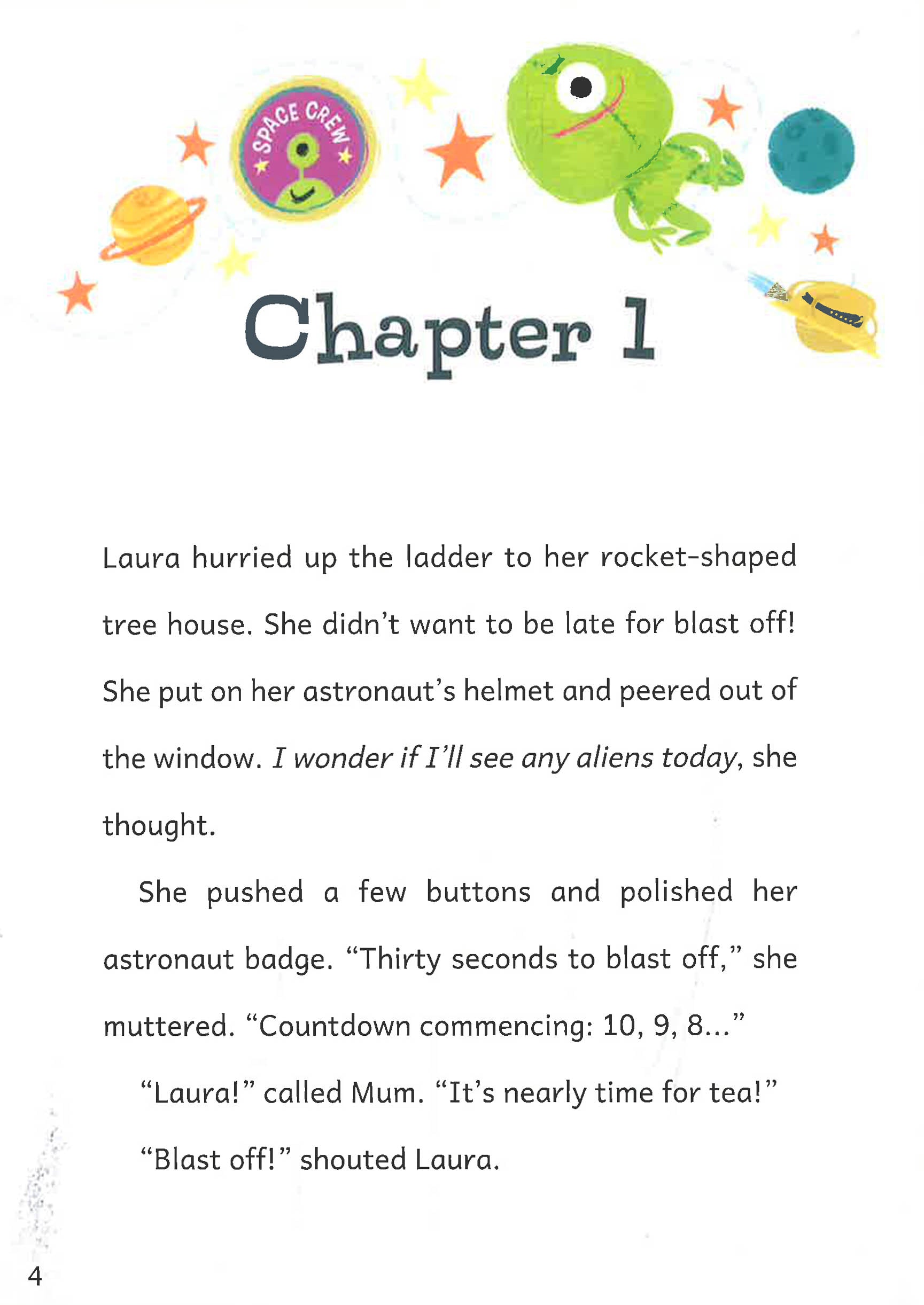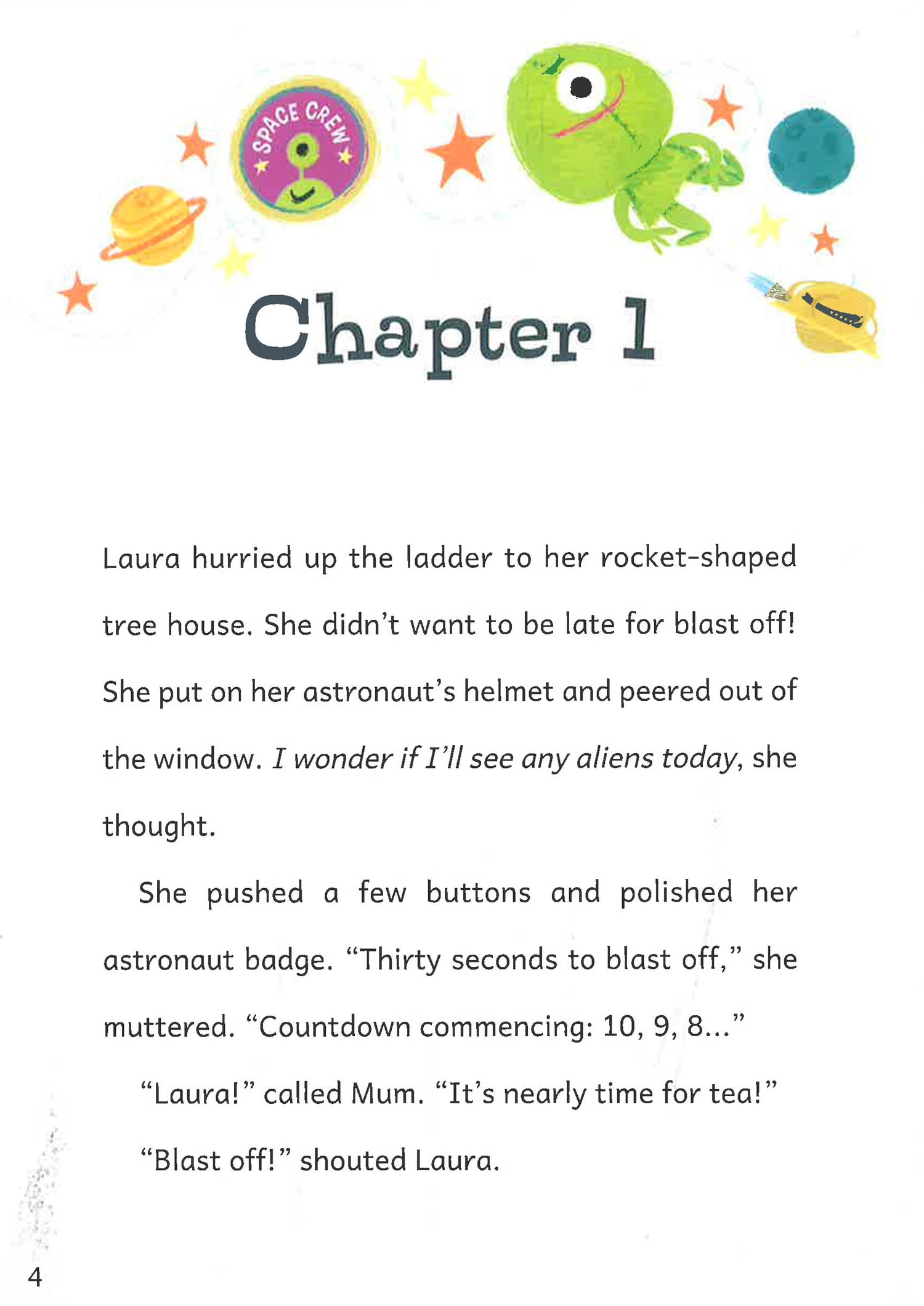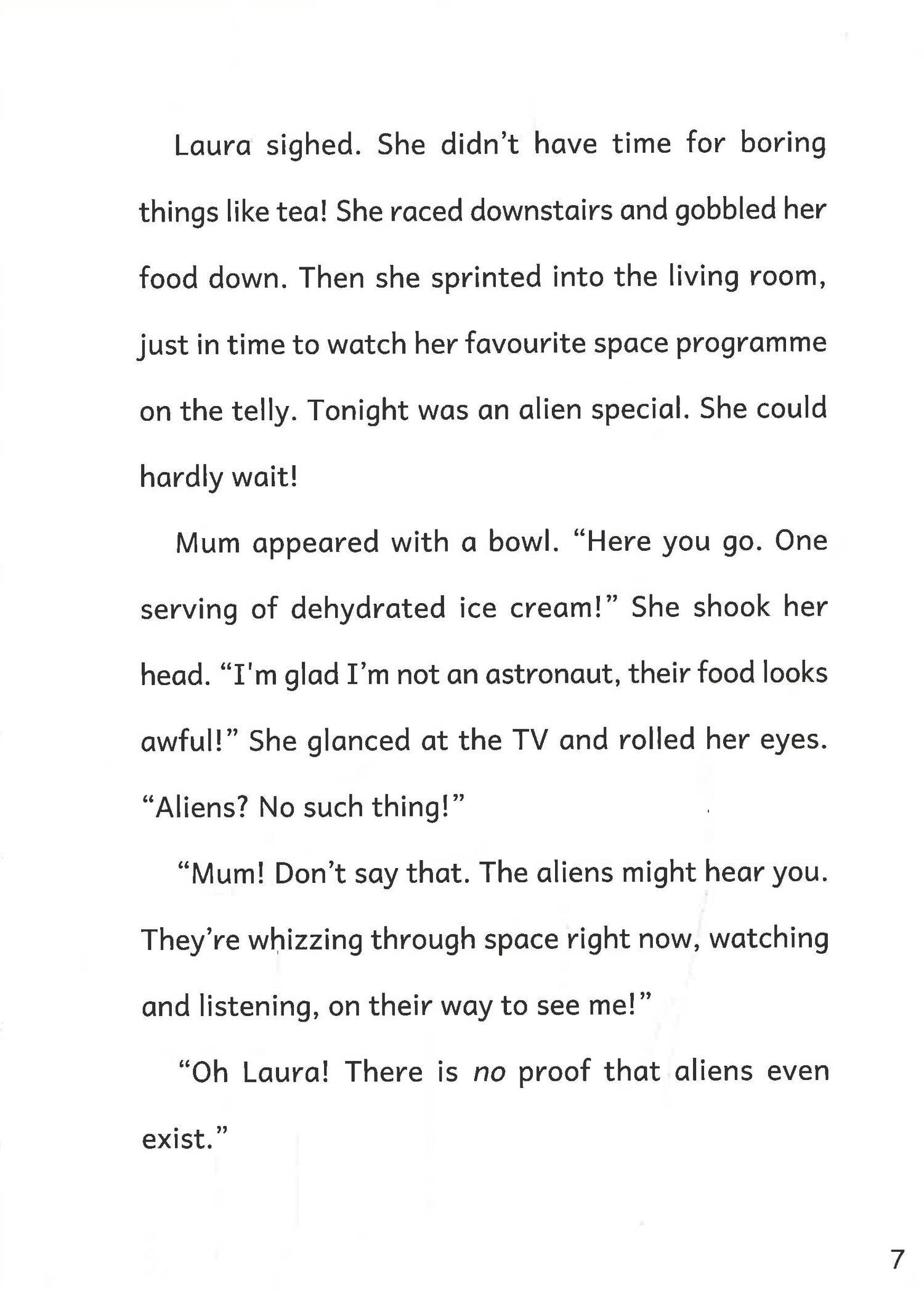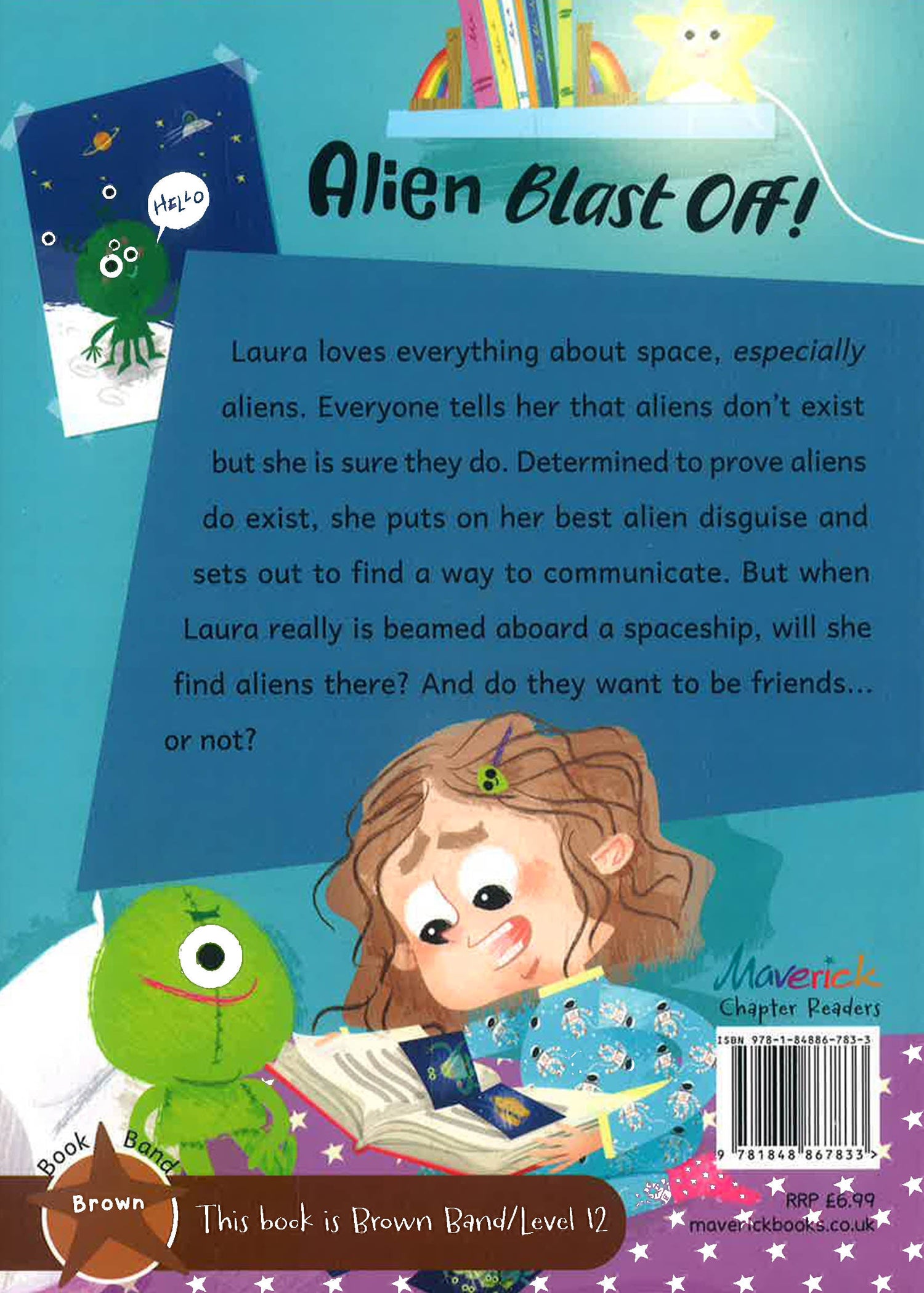 Laura loves everything about space, especially aliens. Everyone tells her that aliens don't exist but she is sure they do. Determined to convince them aliens do exist, she puts on her best alien disguise and sets out to find a way to communicate. But when Laura really is beamed aboard a spaceship, will she find aliens there? And do they want to be friends... or not?
