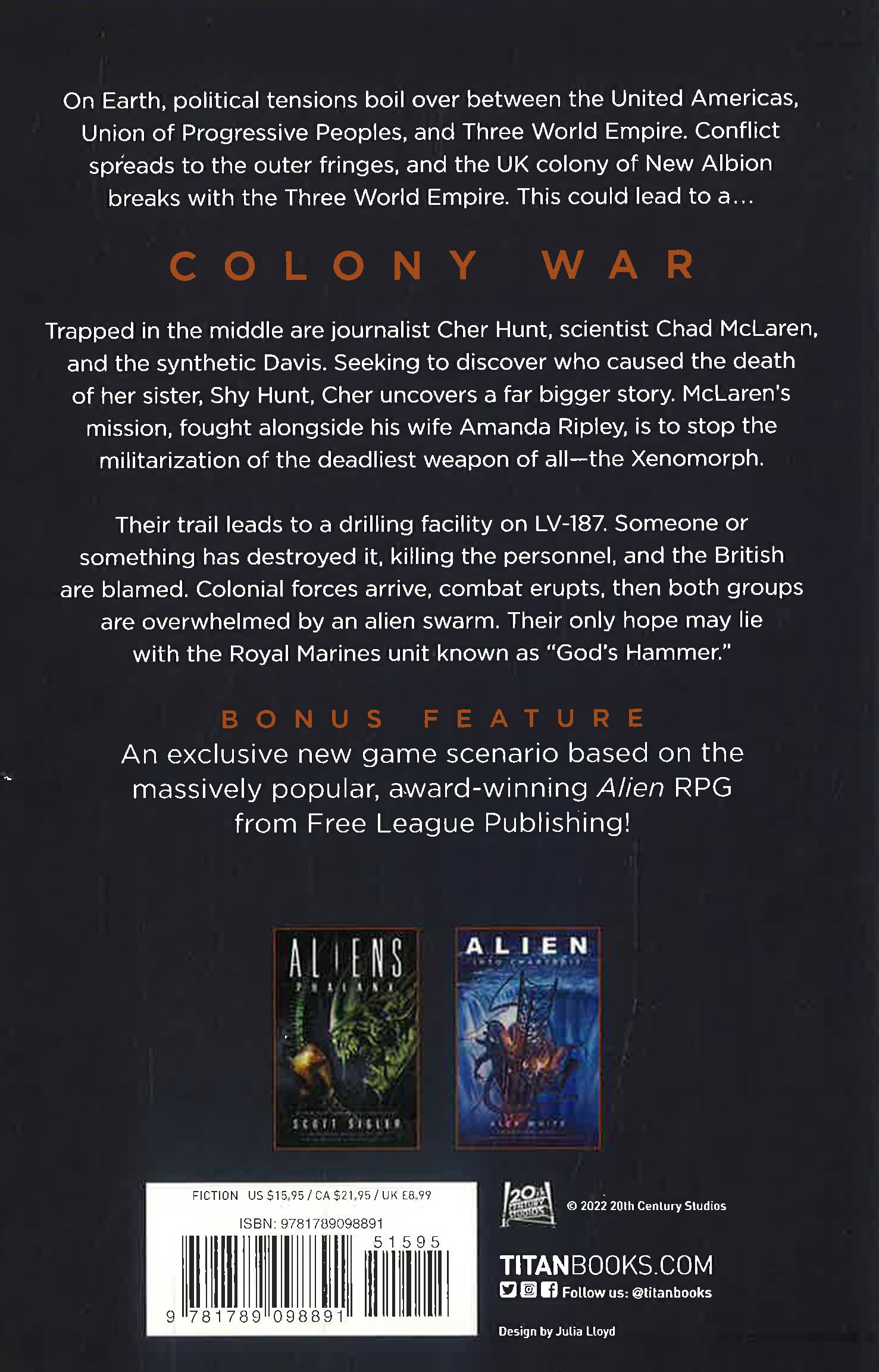 Trapped in the middle are journalist Cher Hunt, scientist Chad McLaren, and the synthetic Davis. Seeking to discover who caused the death of her sister, Shy Hunt, Cher uncovers a far bigger story. McLaren's mission, fought alongside his wife Amanda Ripley, is to stop the militarization of the deadliest weapon of all—the Xenomorph.