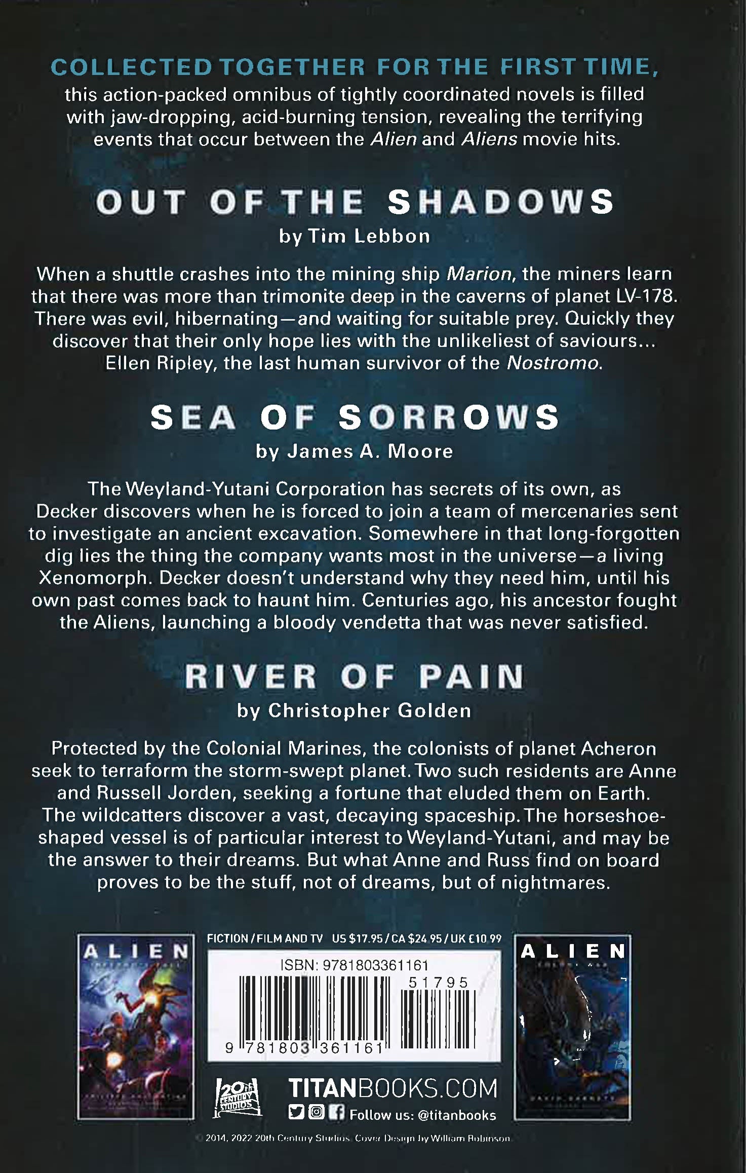 Collected together for the first time, this action-packed omnibus of tightly coordinated novels is stuffed to the gills with jaw-dropping, acid-burning tension, revealing the terrifying events that occur between the Alien and Aliens movie hits.