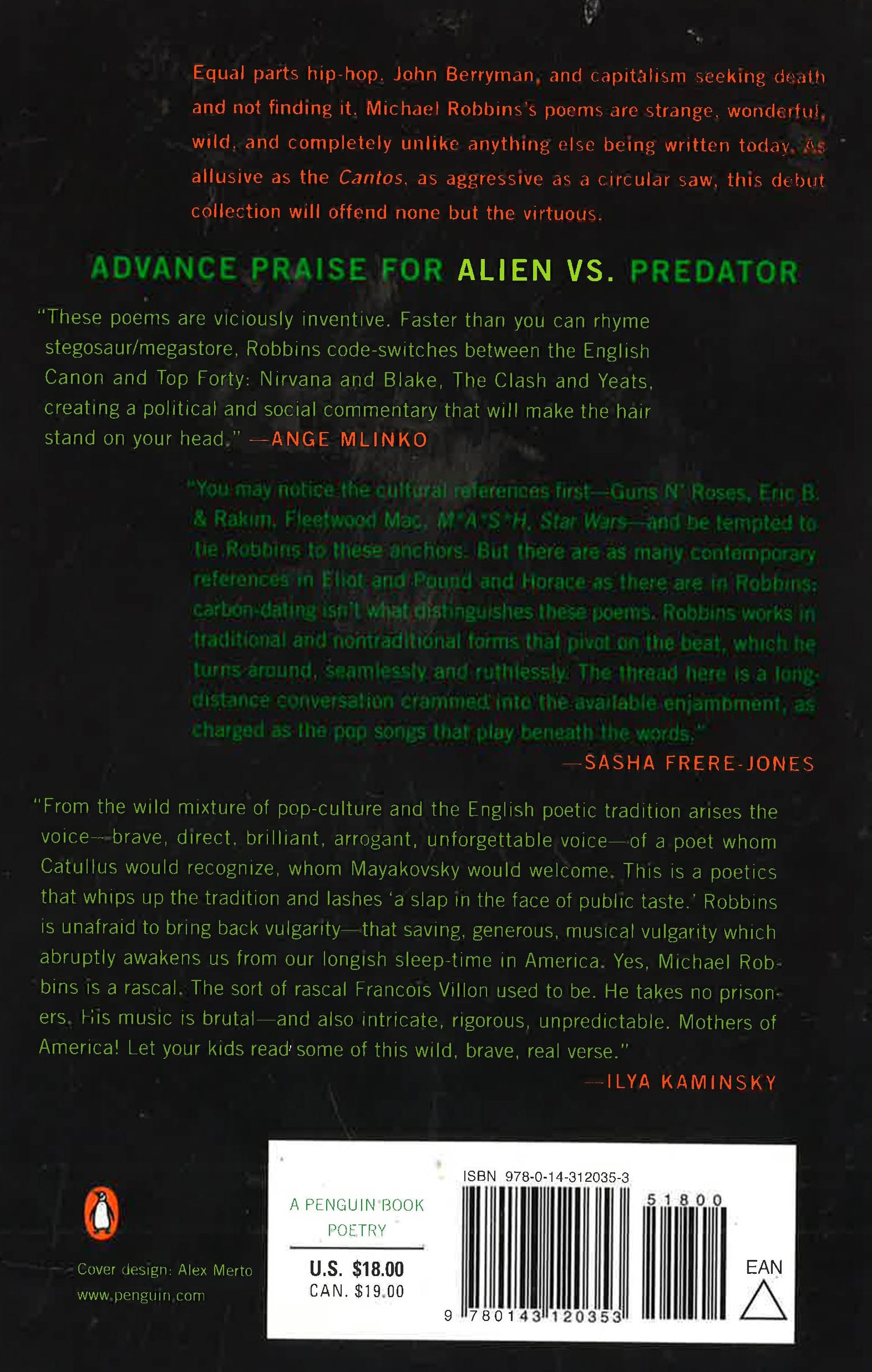 Since his poems first began to appear in the pages of The New Yorker and Poetry, there has been a lot of excited talk about the fresh and inventive work of Michael Robbins. Equal parts hip- hop, John Berryman, and capitalism seeking death and not finding it, Robbins's poems are strange, wonderful, wild, and completely unlike anything else being written today. As allusive as the Cantos, as aggressive as a circular saw, this debut collection will offend none but the virtuous, and is certain to receive an enormous amount of attention.