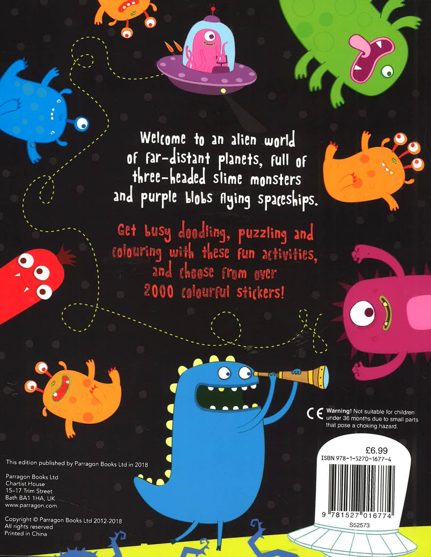 There's so much fun to be had with Aliens Sticker Time! Find your way across an alien planet, match the spaceship pairs, colour and doodle with activities that are out of this world. Choose from 2000 colourful stickers to complete the exciting activities.