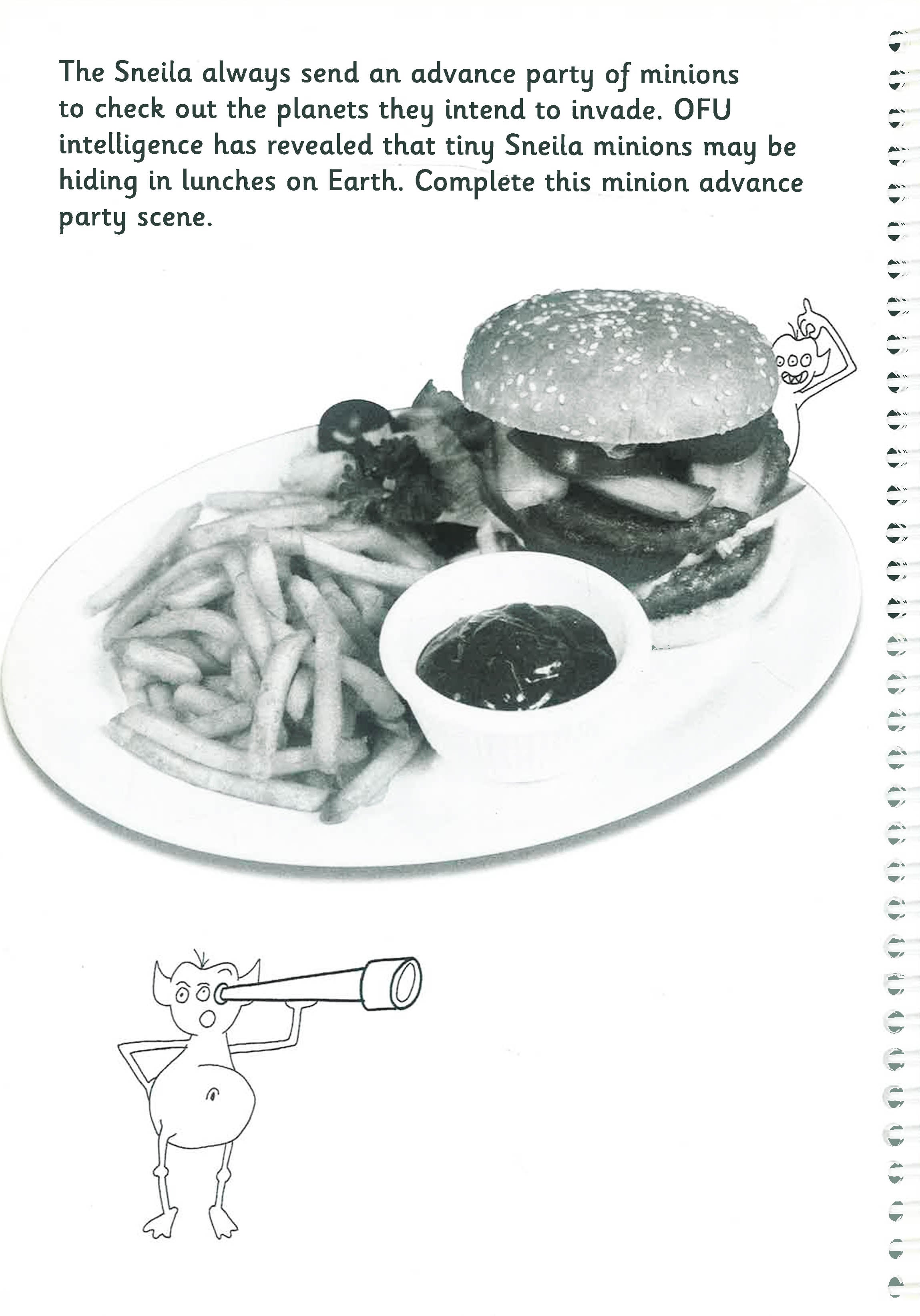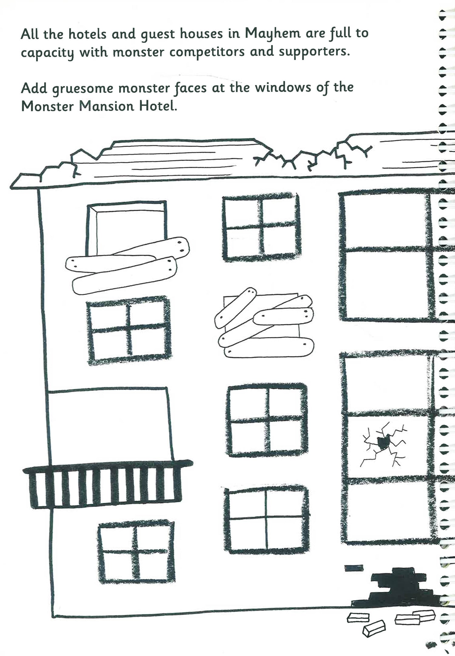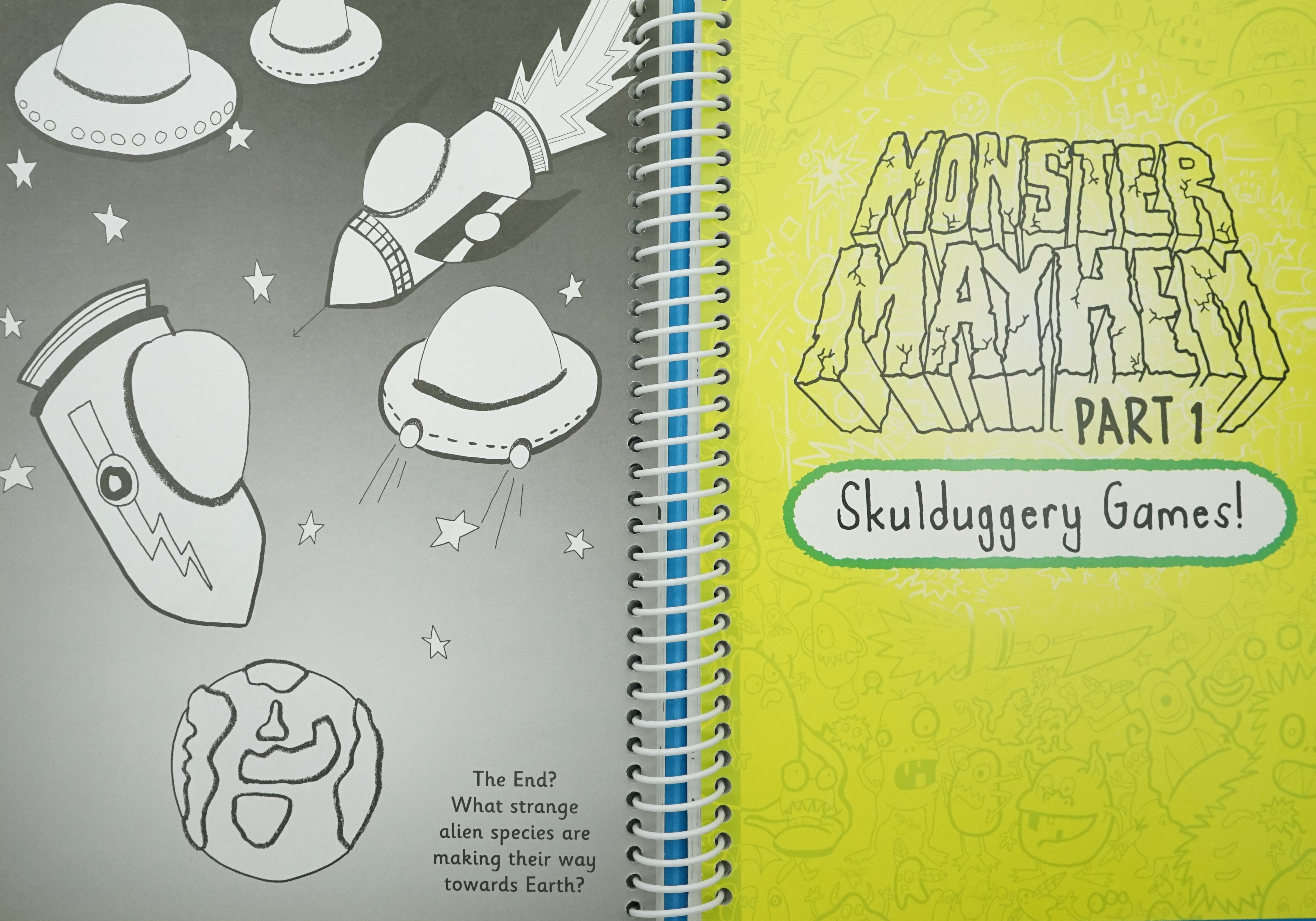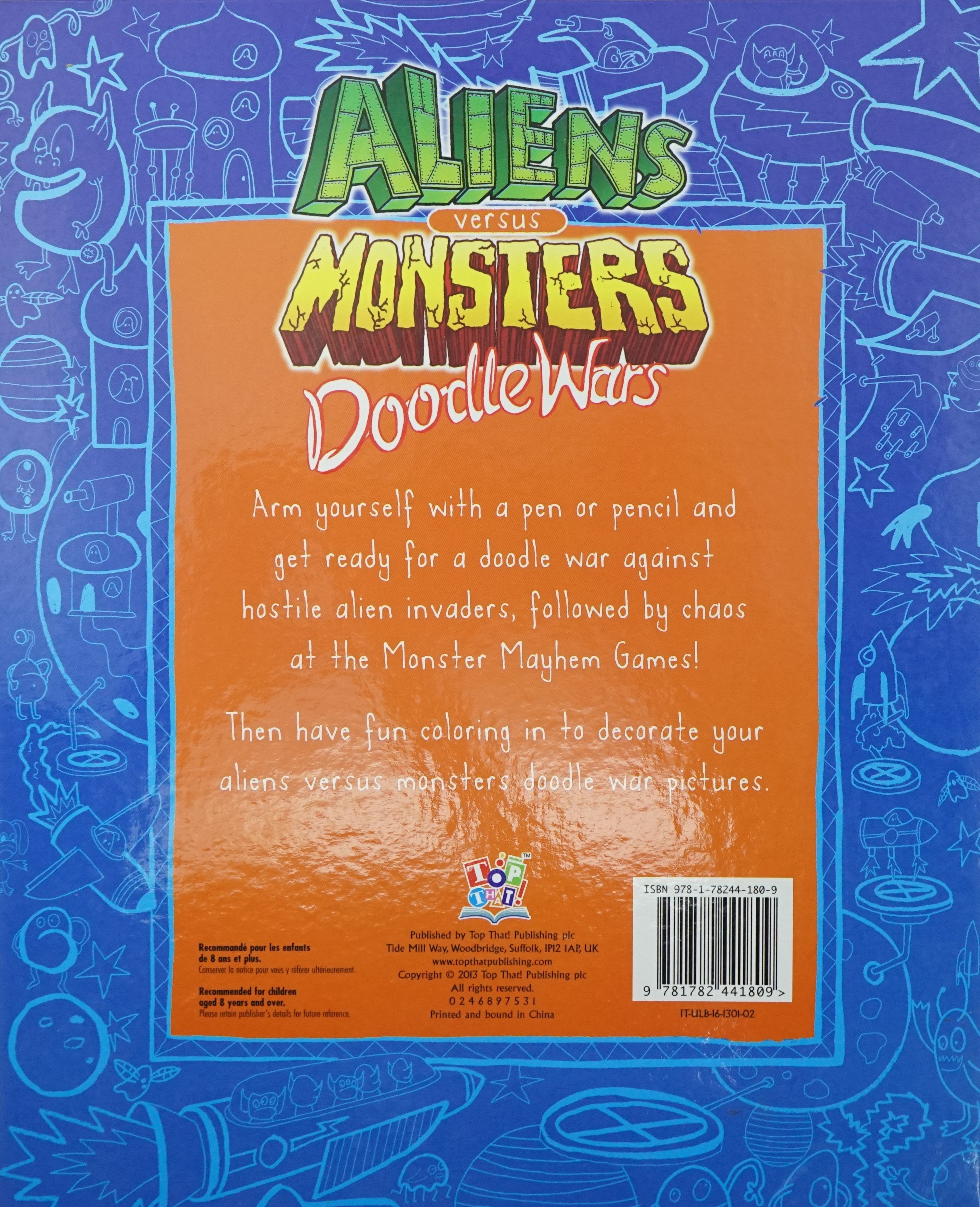 Arm yourself with a pen or pencil and get ready for a doodle war against hostile alien invaders, followed by chaos at the Monster Mayhem Games! Then have fun colouring in to decorate your aliens versus monsters doodle war pictures.