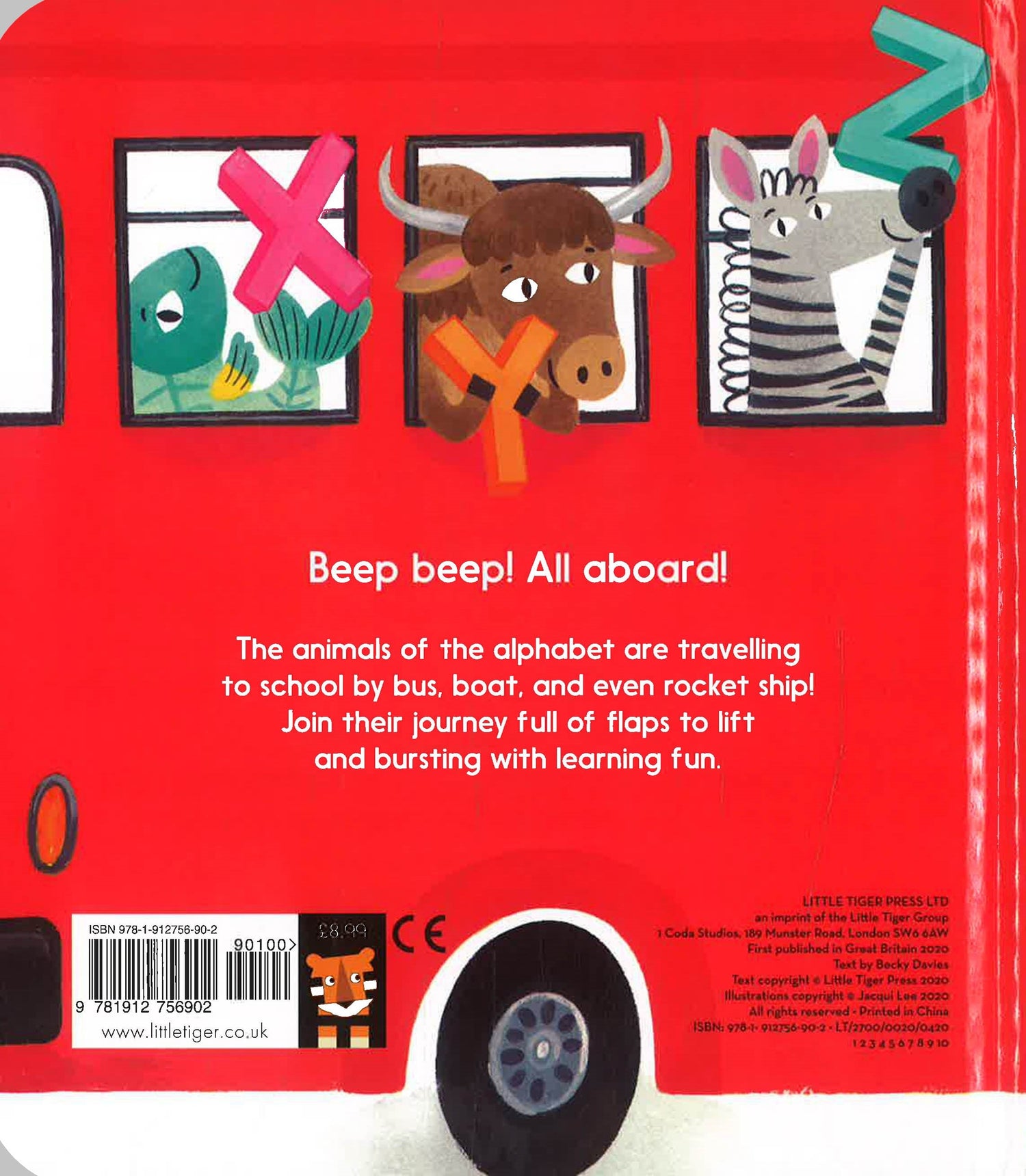 The Alphabet Animals are travelling to school by bus, boat and even rocket ship! Join them for a lift-the-flap adventure full of learning fun.