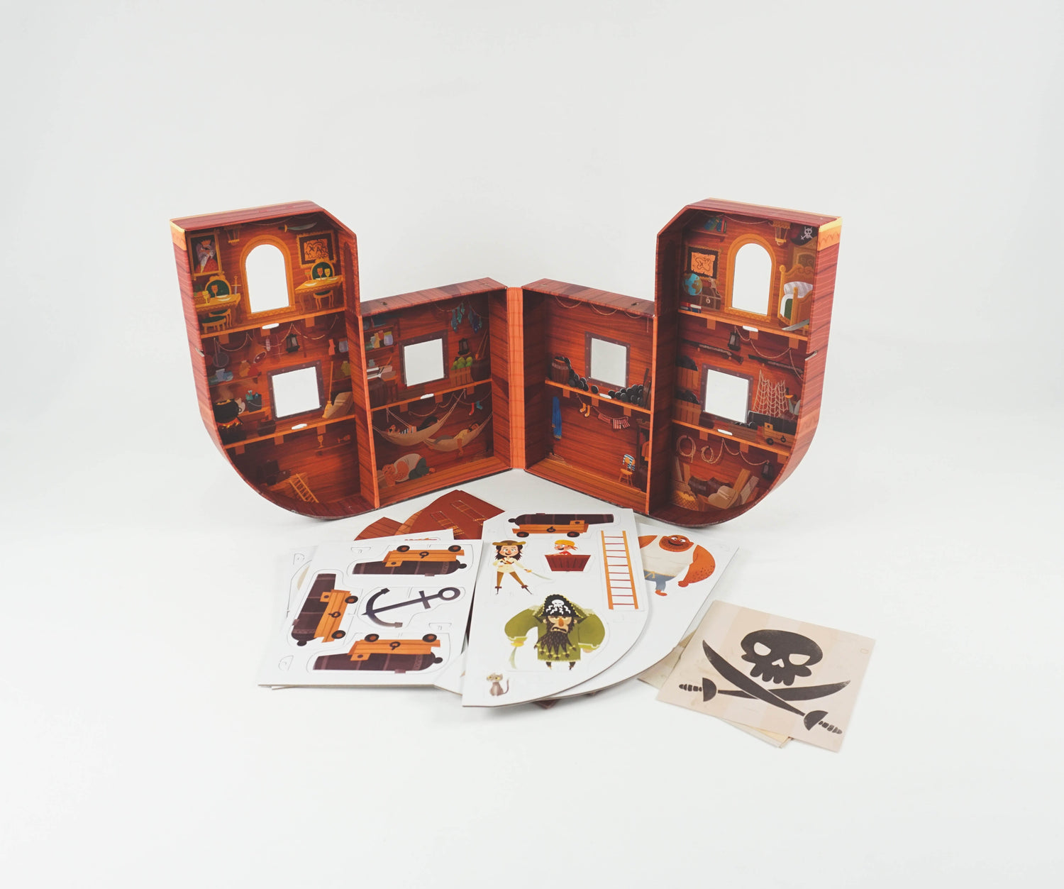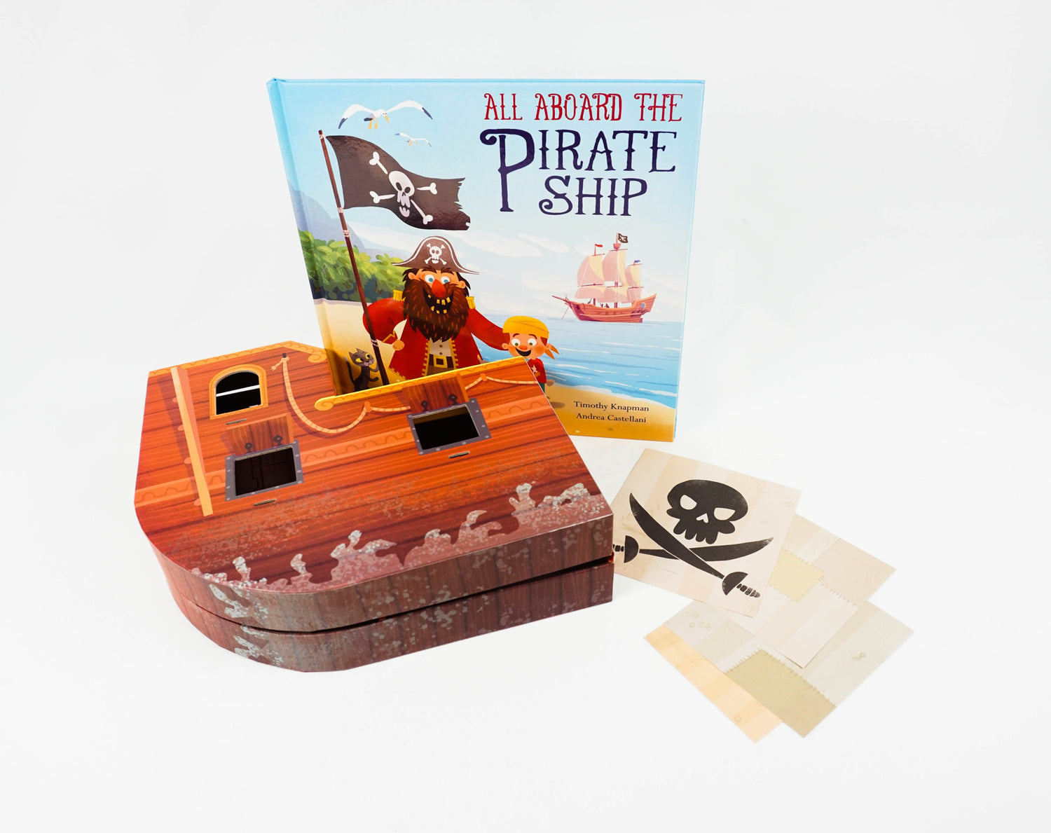 Story time has never been so much fun! Join Tommy Montgomer as he stows away on board the Pirate's Revenge for the adventure of a lifetime. Then build the ship and stage your very own pirate adventure with a fold open model of the pirate ship featured in the story, complete with characters and props.