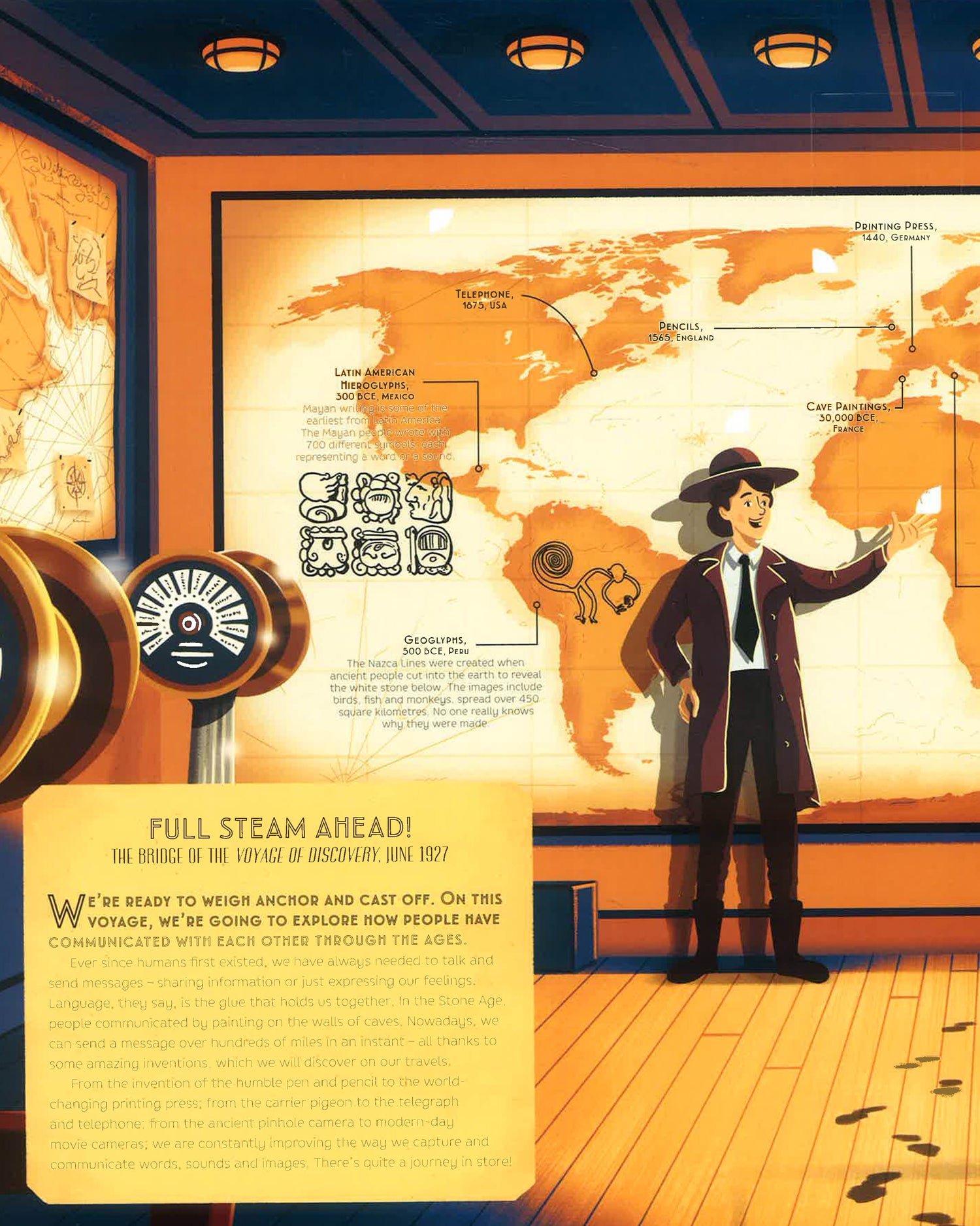 Welcome on deck of the Voyage of the Discovery! The year is 1927. Travelling on board with us is an illustrious collection of some of the greatest minds of their generation. From the fields of science, engineering, geography and history, our experts have come together to explain some of history's greatest inventions to improve communication, including the printing press, radio, telephones and television. But there's a conundrum afoot and they need YOU to help them. Can you decipher the puzzles to solve the mystery of the missing movie? The stylish Art-Deco-inspired pages of this lavish volume are strewn with novelty ephemera, from postcards and tickets to booklets, code ciphers and maps, which bring to life the mystery as you solve the puzzles to continue your whistle-stop tour around the world. Full steam ahead for the interactive adventure of a lifetime!