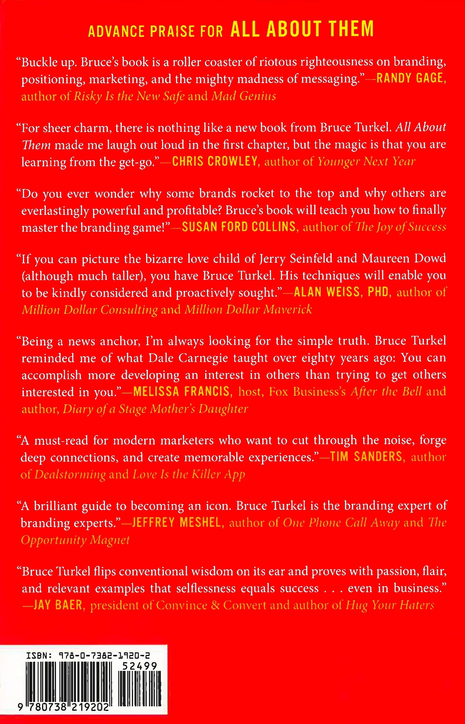 The best companies and most successful salespeople live by a three-word mantra-"all about them"-because when they relentlessly focus their brand on their customers instead of themselves, their businesses flourish. All about Them shows readers how to use this simple but extremely powerful influencing technique. Bruce Turkel, who has advised some of the world's greatest companies, including American Express and Bacardi, lays the groundwork by relating his personal journey of discovery to the "All about Them" principle. He goes on to explore our technology-driven, hyper- connected culture the power of storytelling (and story- selling ) brand authenticity and transparency and more. *This book may have minor shelfwear.