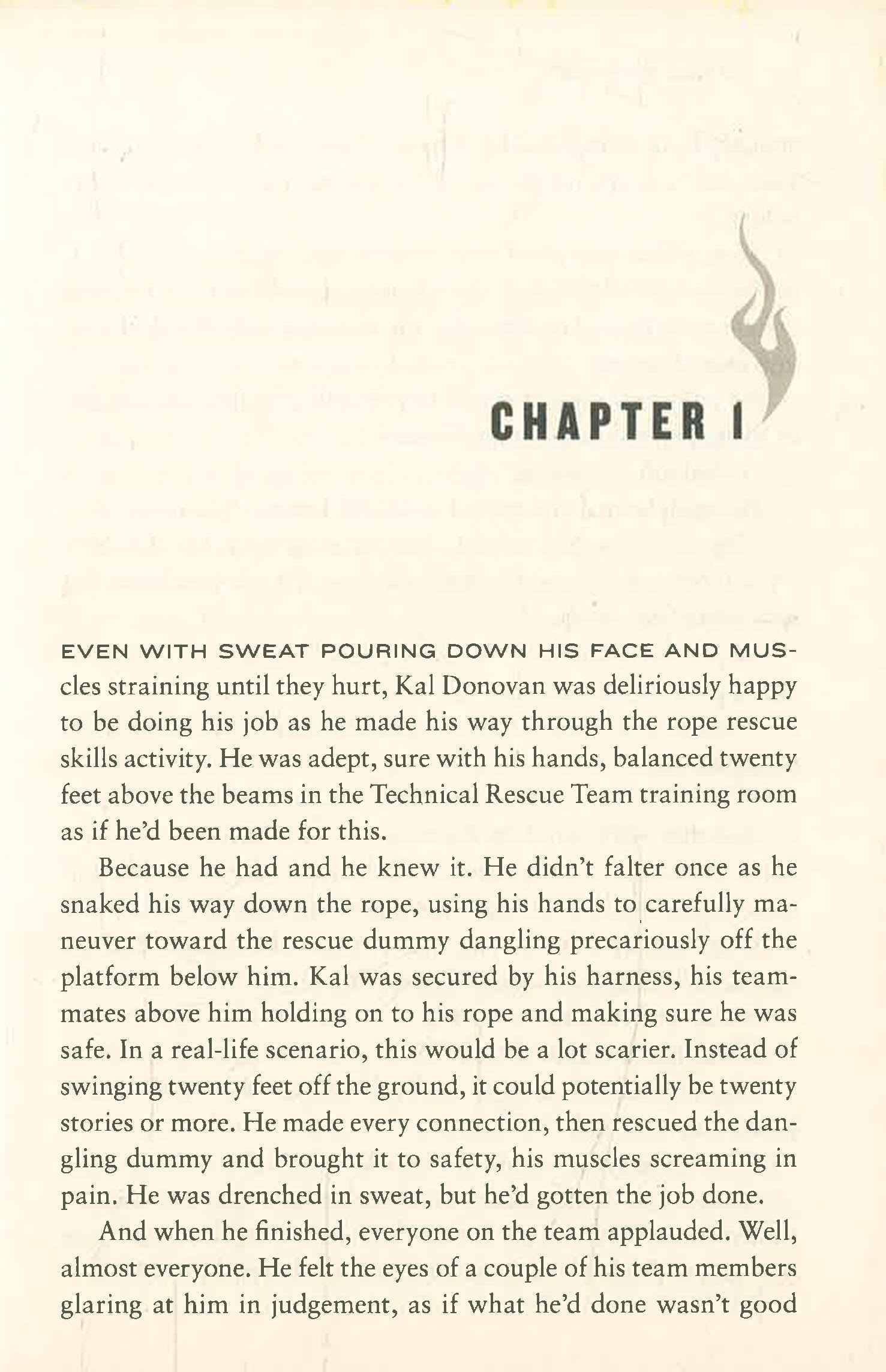 When firefighter Kal Donovan transfers to the Tactical Rescue Team, he's determined to give work all his attention. This proves more difficult when he encounters his first love, Hannah Clark, at their high school reunion. She's still smart, funny, and beautiful but, now divorced with a son, she has zero interest in exploring an old romance.