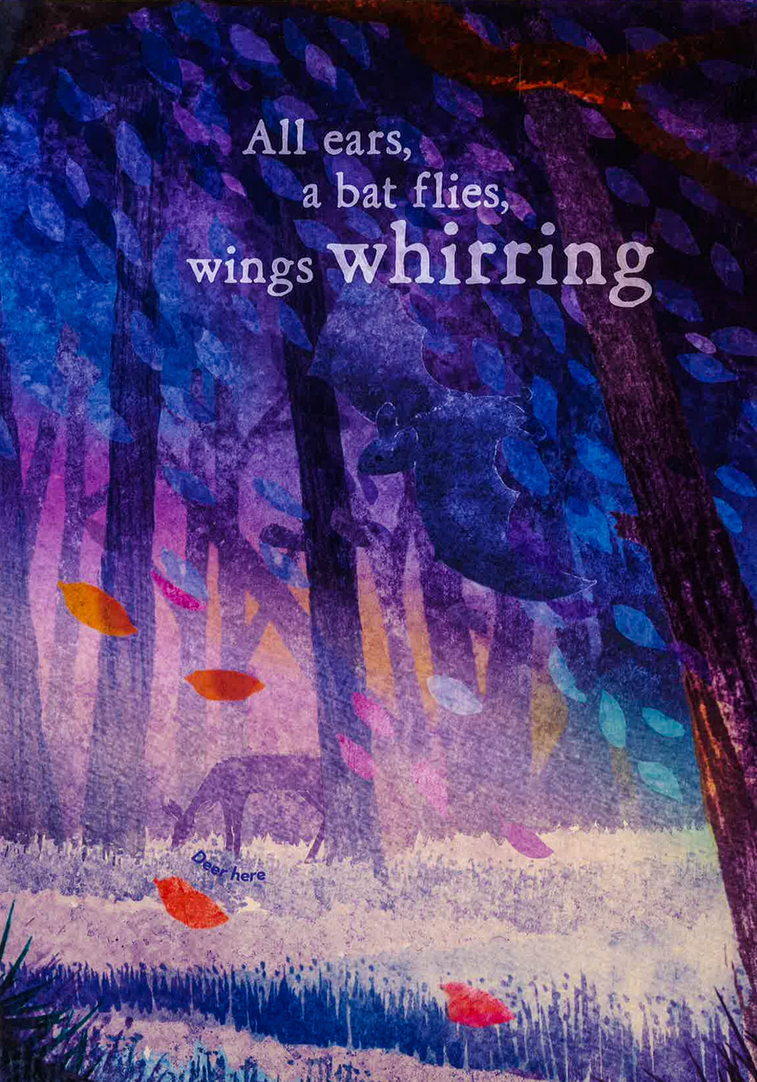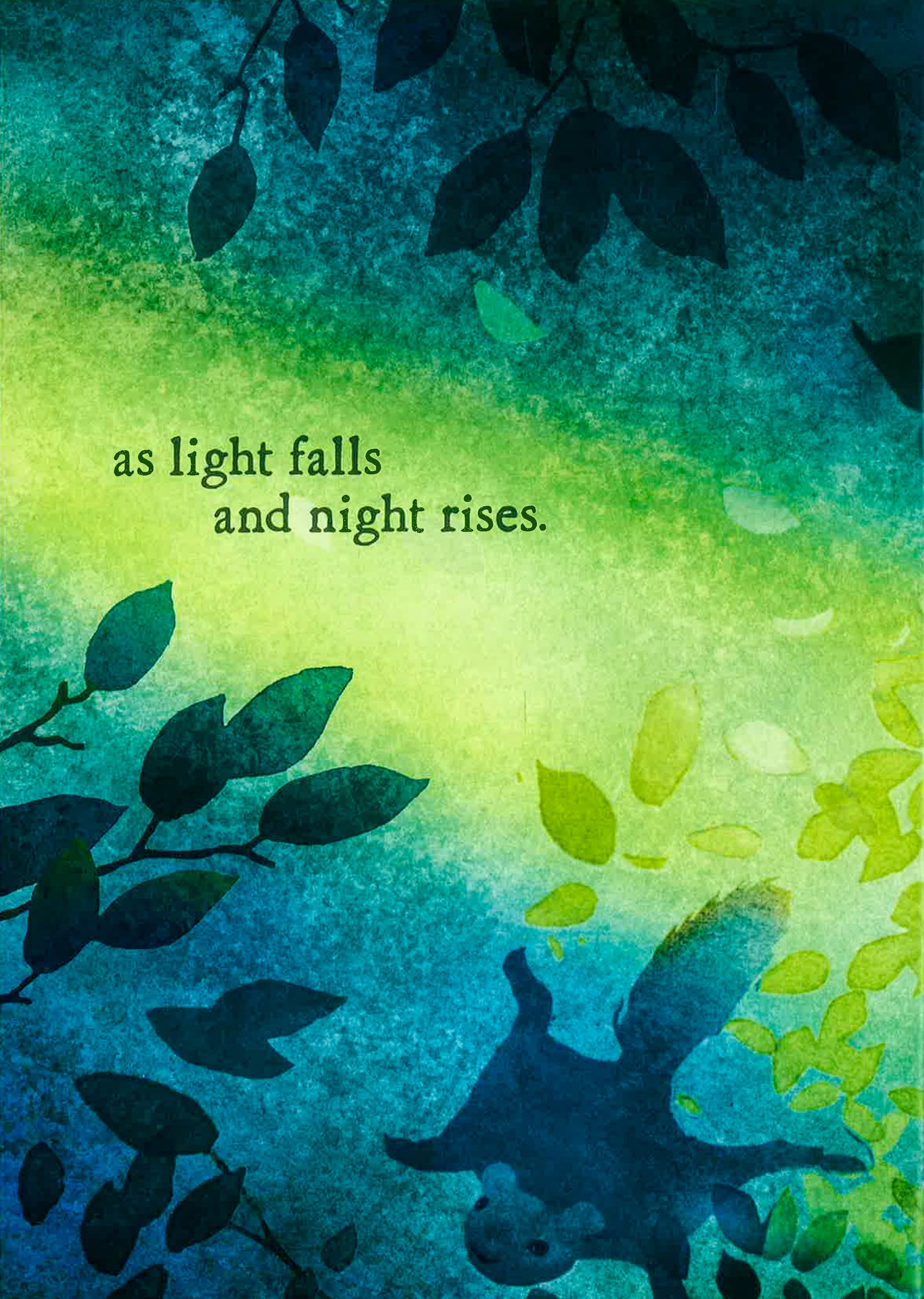 Who listens? Who looks? Who hears? Who sees? An homage to the melodies of nighttime, to each critter that sings, hoots, or glows, All Ears, All Eyes takes us on a moonlit journey where the landscape shimmers with Fantasia-like beauty. Where if you look and listen, you might spy an owl, a deer, a chipmunk--or--what else!--before falling asleep.