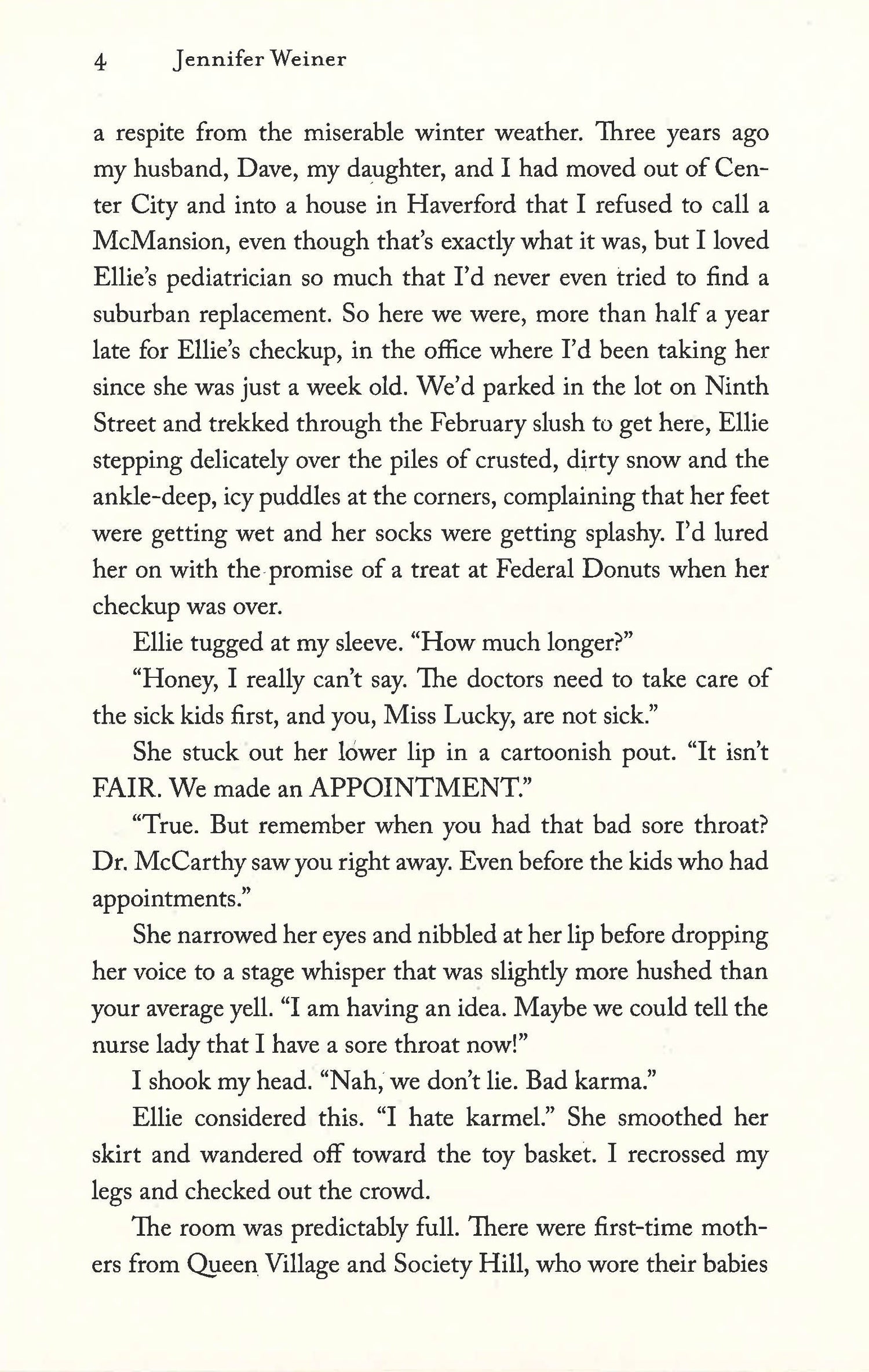 From a #1 New York Times bestselling author comes her ""best book yet"" (Philadelphia Inquirer). Allison Weiss got her happy ending-a handsome husband, an adorable daughter, a job she loves, and the big house in the suburbs. But while waiting in the pediatrician's office, she opens a magazine to a quiz about addiction and starts to wonder: Is a Percocet at the end of the day really different from a glass of wine? She tells herself that the pills help her make it through her days--but what if her increasing drug use, a habit that's becoming expensive and hard to hide, is turning into her biggest problem of all? Hailed as ""a witty, realistic criticism on the modern age"" (Boston Herald), this remarkable story of a woman's fall into addiction and struggle to find her way back up again is Jennifer Weiner's most masterful, moving, and celebrated work yet.