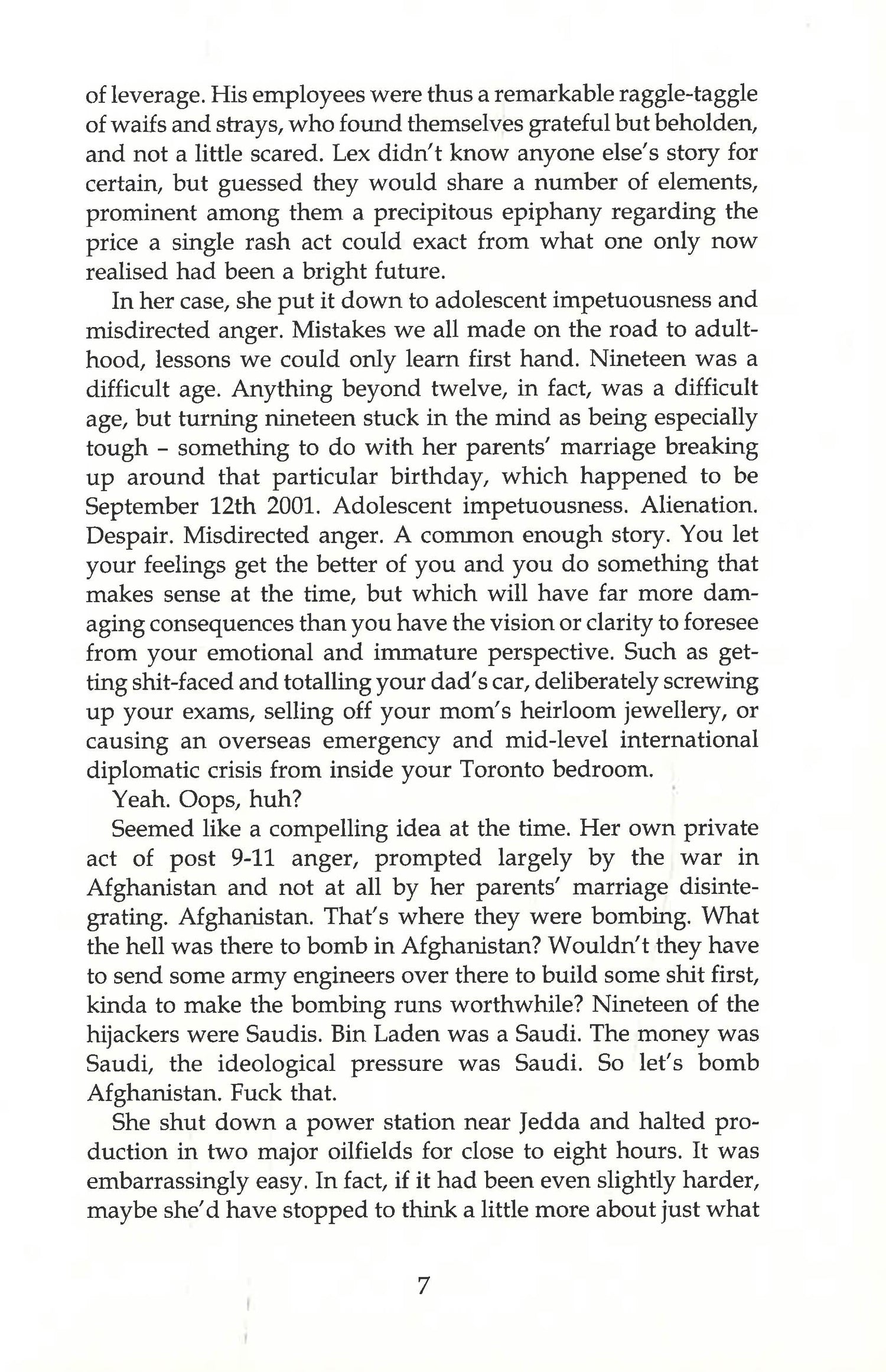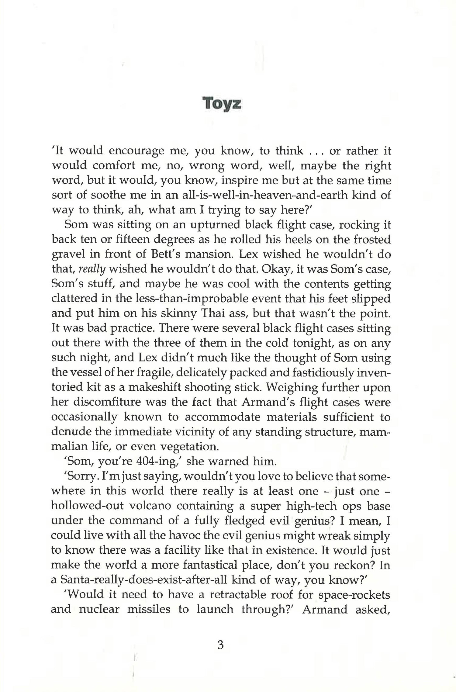 As a teenager Jane Bell had dreamt of playing in the casinos of Monte Carlo in the company of James Bond, but in her punk phase she'd got herself pregnant and by the time she reaches forty-six she's a grandmother, her dreams as dry as the dust her Dyson sucks up from her hall carpet. Then her son Ross, a researcher working for an arms manufacturer in Switzerland, is forced to disappear before some rather shady and dangerous characters persuade him to part with the secrets of his research. But they are not the only ones desperate to locate him. Ross's firm also hires a team of security experts--headed by the enigmatic Bett, they have little in common apart from total professionalism and a thorough dis-regard for the law. Bett believes the key to Ross's whereabouts is his mother, and in one respect he is right, but even he is taken aback by the verve underlying her determination to secure her son's safety. The teenage dreams of fast cars, high-tech firepower and extreme action had always promised to be fun and games, but in real life it's likely someone is going to lose an eye . . .