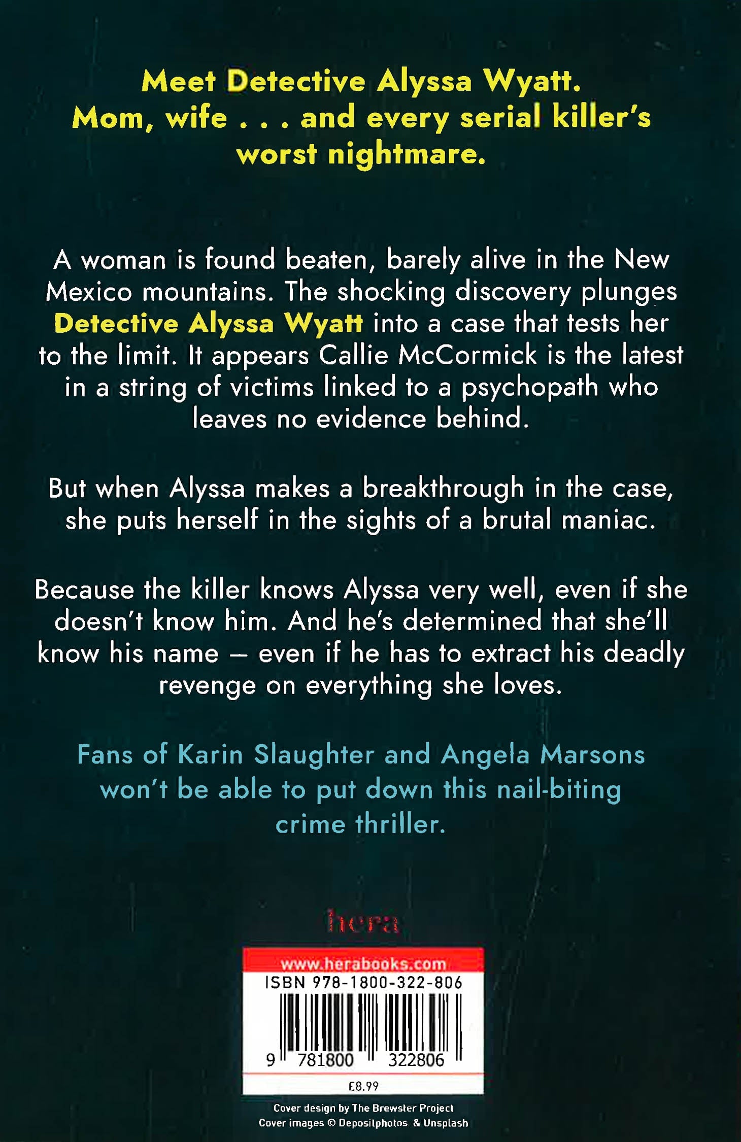 A woman is found naked, badly beaten, and barely alive in the New Mexico mountains. The shocking discovery plunges Albuquerque Detective Alyssa Wyatt into a case that will test her to the limit. It appears that Callie McCormick is the latest plaything of a mysterious psychopath who leaves a long shadow on the streets of New Mexico—an individual linked to a string of deaths but leaving no evidence. But when Alyssa makes a breakthrough that just might reveal the killer, she unknowingly puts herself in the crosshairs of a brutal maniac—one with an old score to settle. Because the killer knows Alyssa very well, even if she doesn’t know him. And he’s determined that she’ll know his name—even if he has to extract his deadly revenge on her and everything she loves.