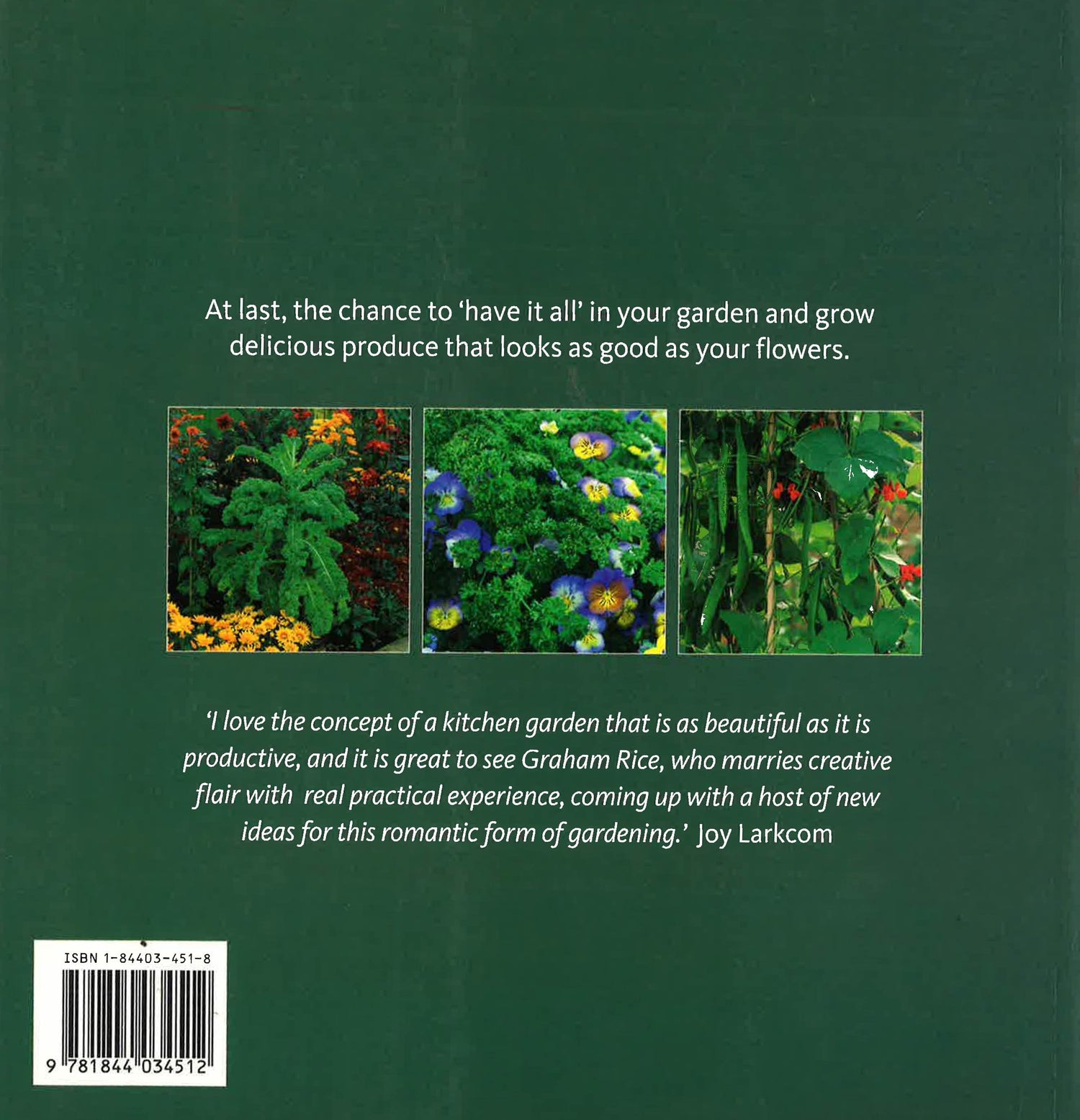 There is a revival of interest in growing food, but as gardens become smaller many people find it difficult to find the space or vote for flowers over food, fearing that vegetables and fruits won't be quite as attractive. "The All-in-one Garden" proves that this isn't the case. Whether you've got acres, a yard or even a window-box, Graham Rice shows that you can integrate food plants into your garden in an attractive way. Some food plants are inherently ornamental, with eye-catching flowers, foliage or fruits. Others have been developed to be ornamental, providing the perfect combination of form and flavour. The true way of having your cake and eating it in garden terms, this is a new way of enjoying your garden to the full.
