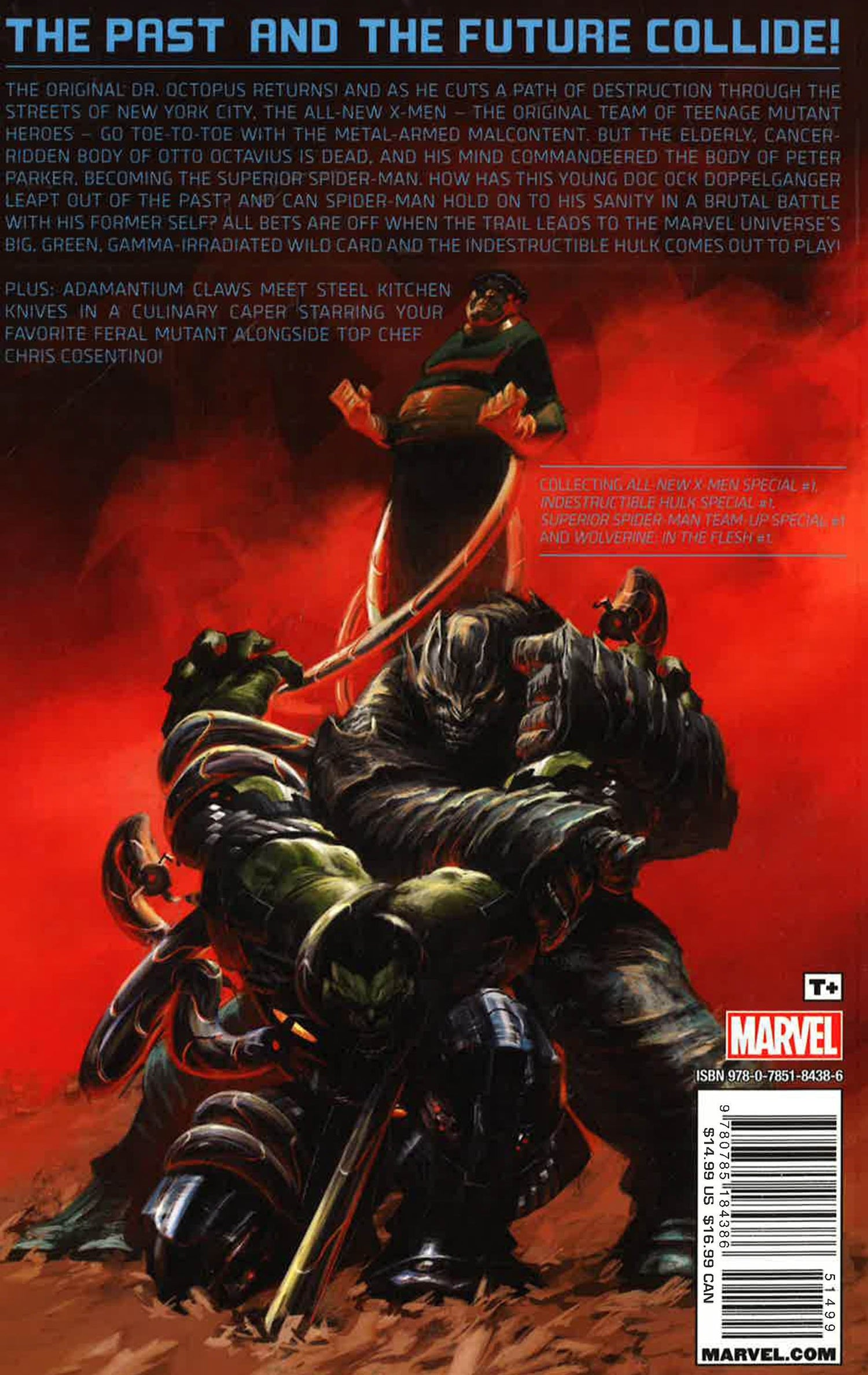 The All-New X-Men meet the Indestructible Hulk and the Superior Spider-Man! Doctor Octopus confronts the time-desplaced young X-Men, but how is he alive?! Ock's appearance gets the immediate attention of the Superior Spider-Man (who we all know is Doc Ock's mind in Spider-Man's body), and Bruce Banner helps Spidey and the young X-Men investigate the mysterious paradox - but before they learn the truth, they're shocked by the return of the believed-dead Abomination! Who is in league with these returned villains, and how can our heroes defeat them?