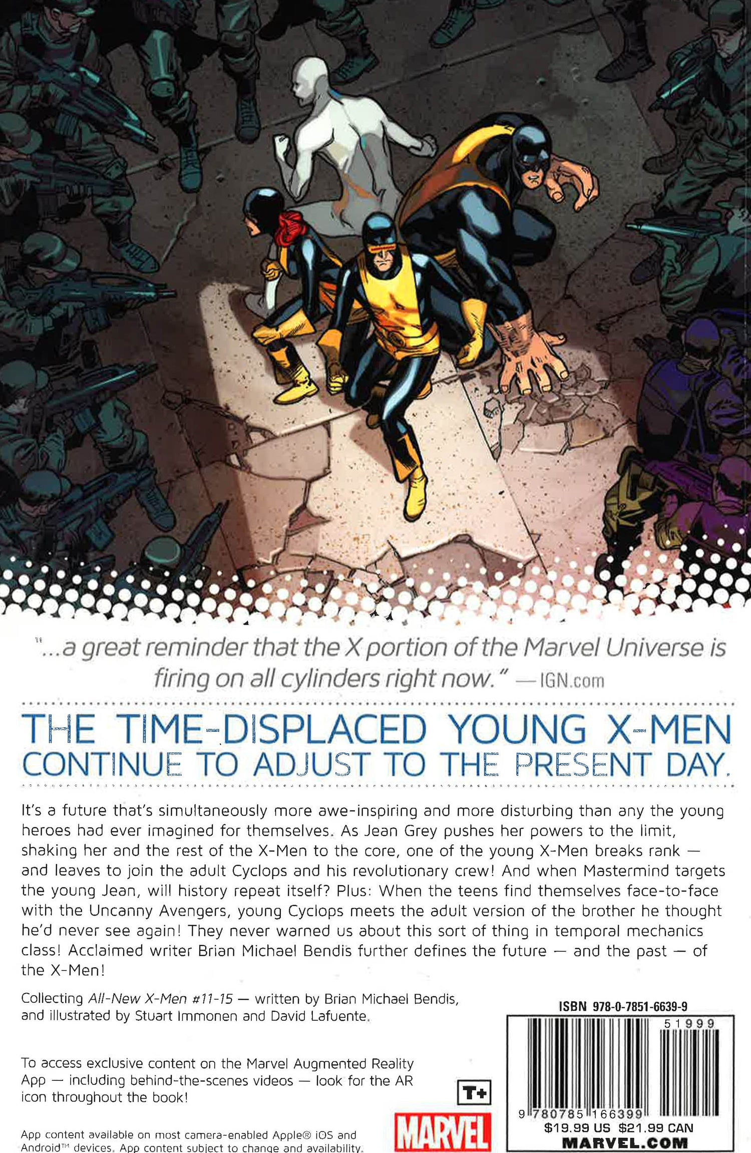 The time-displaced young X-Men continue to adjust to a present day that's simultaneously more awe-inspiring and more disturbing than any future the young heroes had ever imagined for themselves. As Jean Grey pushes her powers to the limit, shaking her and the rest of the X-Men to the core, one of the young X-Men breaks rank - and leaves to join the adult Cyclops and his revolutionary crew! And when Mastermind targets the young Jean, will history repeat itself? Plus: When the teens find themselves face-to-face with the Uncanny Avengers, young Cyclops meets the adult version of the brother he thought he'd never see again! They never warned us about this sort of thing in temporal mechanics class! Acclaimed writer Brian Michael Bendis further defines the future - and the past - of the X-Men!COLLECTING: All -New X-Men 11-15