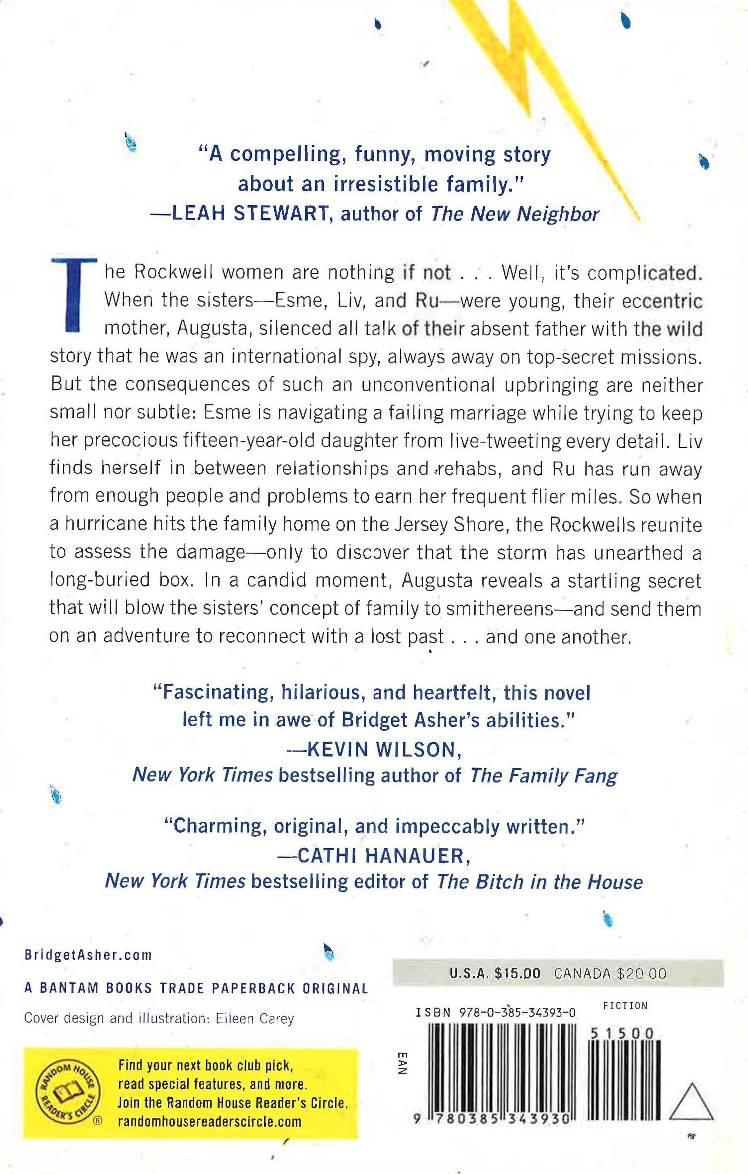 For fans of the quirky, heartfelt fiction of Nick Hornby and Eleanor Brown comes a smart, wry, and poignant novel about reconciliation between fathers and daughters, between spouses; the deep ties between sisters; and the kind of forgiveness that can change a person's life in unexpected and extraordinary ways. The Rockwell women are nothing if not . . . Well, it's complicated. When the sisters--Esme, Liv, and Ru--were young, their eccentric mother, Augusta, silenced all talk of their absent father with the wild story that he was an international spy, always away on top-secret missions. But the consequences of such an unconventional upbringing are neither small nor subtle: Esme is navigating a failing marriage while trying to keep her precocious fifteen-year-old daughter from live-tweeting every detail. Liv finds herself in between relationships and rehabs, and Ru has run away from enough people and problems to earn her frequent flier miles. So when a hurricane hits the family home on the Jersey Shore, the Rockwells reunite to assess the damage--only to discover that the storm has unearthed a long-buried box. In a candid moment, Augusta reveals a startling secret that will blow the sisters' concept of family to smithereens--and send them on an adventure to reconnect with a lost past . . . and one another. Praise for All of Us and Everything "Engaging . . . [a] lively comic novel about stormy women and the spy (and other sexy types) who loved them."--People ("The Best New Books") "Similar to Nick Hornby's A Long Way Down, [All of Us and Everything] rewards readers with an engrossing plot rich in witty and frank dark humor. . . . Readers will linger on the story's web of connections. . . . Thoughtful and provoking."--Booklist "[Bridget] Asher's newest title spotlights her unique voice plus an affinity for quirky, wounded characters that are both realistic and likable. . . . The subtle theme [is] how changing our stories can change us. An entertaining yet astute look at family, self, story, and connections."--Kirkus Reviews "Charming, original, and impeccably written, All of Us and Everything is a spirited romp through the lives of an unusual family of women--three adult sisters, their mother, one teenage daughter, and their longtime housekeeper--and the men who love them, amuse them, pursue them, and lose them. When I wasn't laughing out loud or eagerly turning pages to see what happened next, I was marveling at Bridget Asher's ability to tell a highly entertaining, fully engaging, and deeply insightful story."--Cathi Hanauer, New York Times bestselling author of Gone "While many writers strive to create a single memorable character, Bridget Asher, seemingly with the flick of her wrist, brings forth four amazing, unique, altogether brilliant characters in All of Us and Everything. The Rockwell siblings, Esme, Liv, and Ru, as well as their fascinating mother, Augusta, won me over completely, and their story twists and turns in such fascinating, hilarious, and heartfelt ways that it left me in awe of Asher's abilities."--Kevin Wilson, New York Times bestselling author of The Family Fang "Bridget Asher's fascinating, eccentric characters are such good company that I finished All of Us and Everything in one sitting. This is a compelling, funny, moving story about an irresistible family."--Leah Stewart, author of The New Neighbor