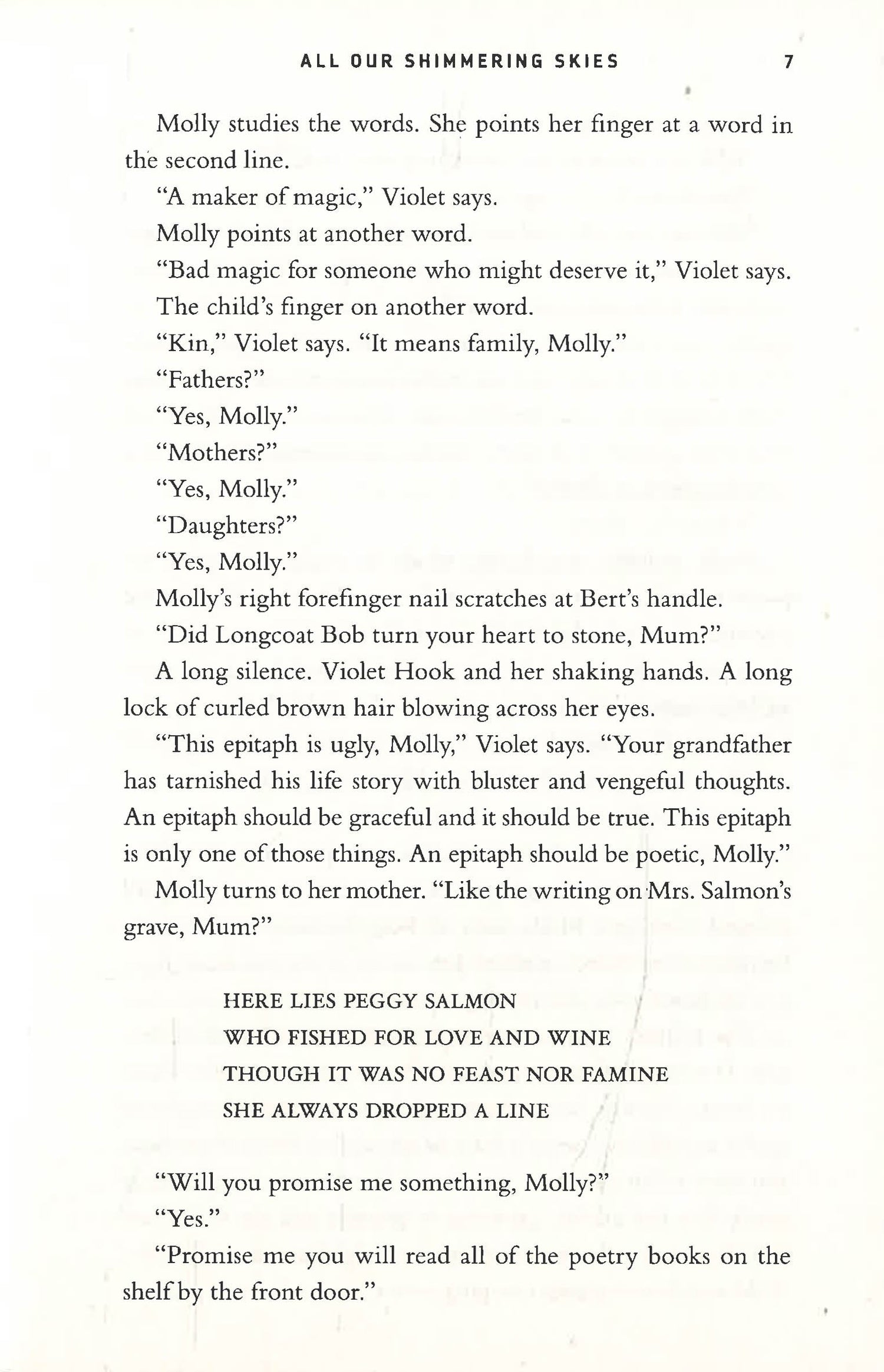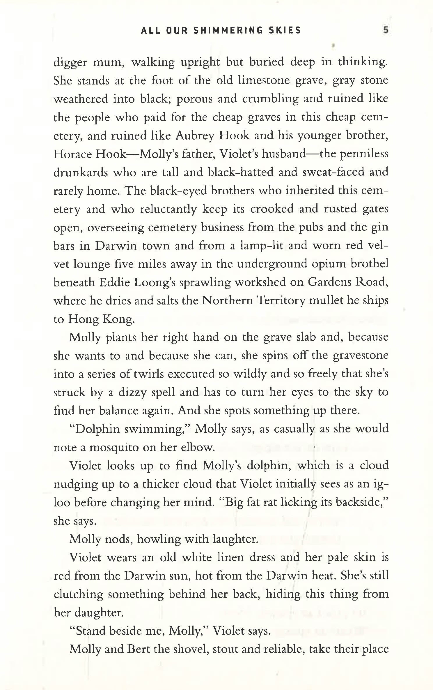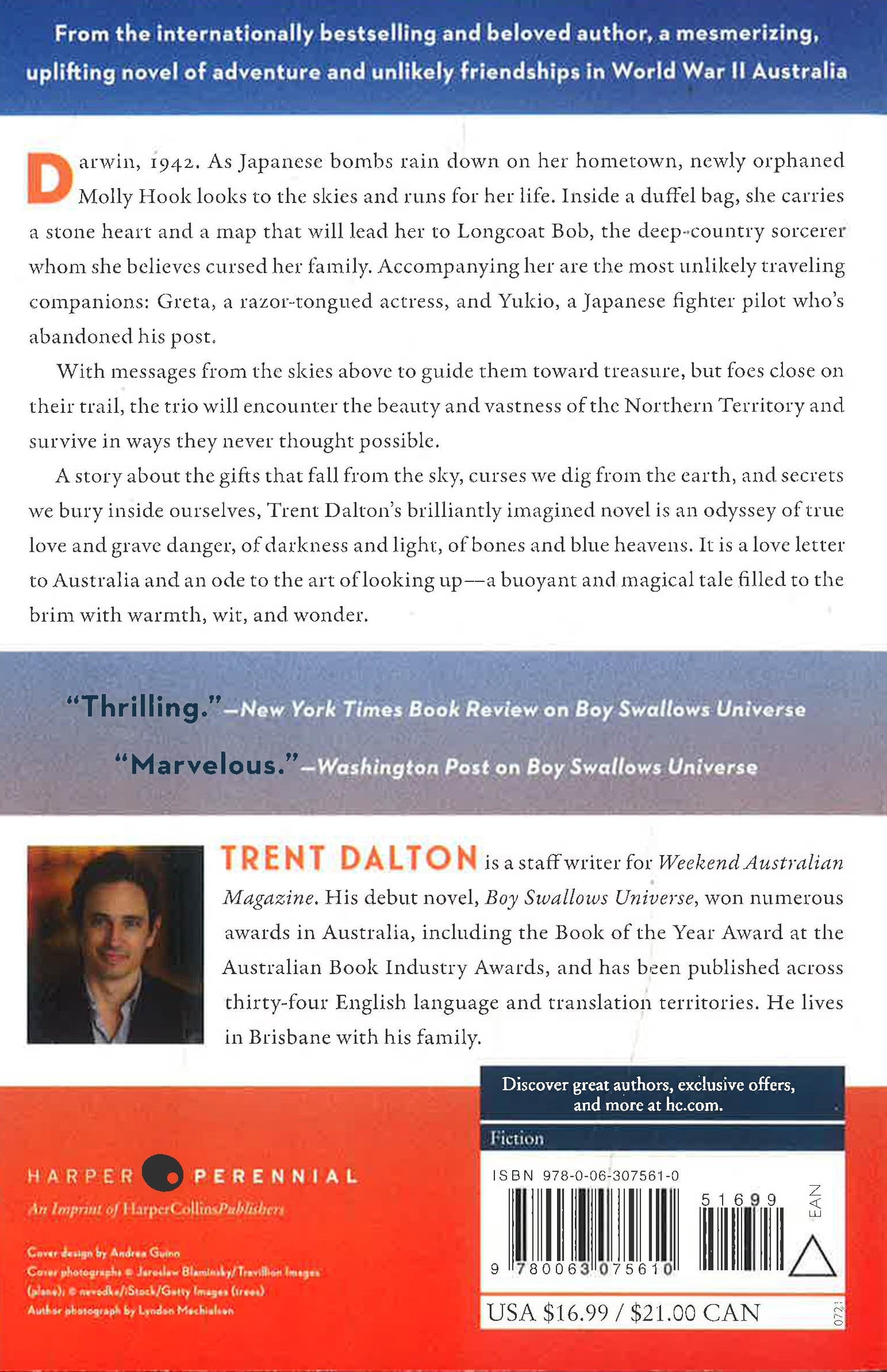 Darwin, 1942. As Japanese bombs rain down on her hometown, newly orphaned Molly Hook looks to the skies and runs for her life. Inside a duffel bag, she carries a stone heart and a map that will lead her to Longcoat Bob, the deep-country sorcerer whom she believes cursed her family. Accompanying her are the most unlikely traveling companions: Greta, a razor-tongued actress, and Yukio, a Japanese fighter pilot who’s abandoned his post.