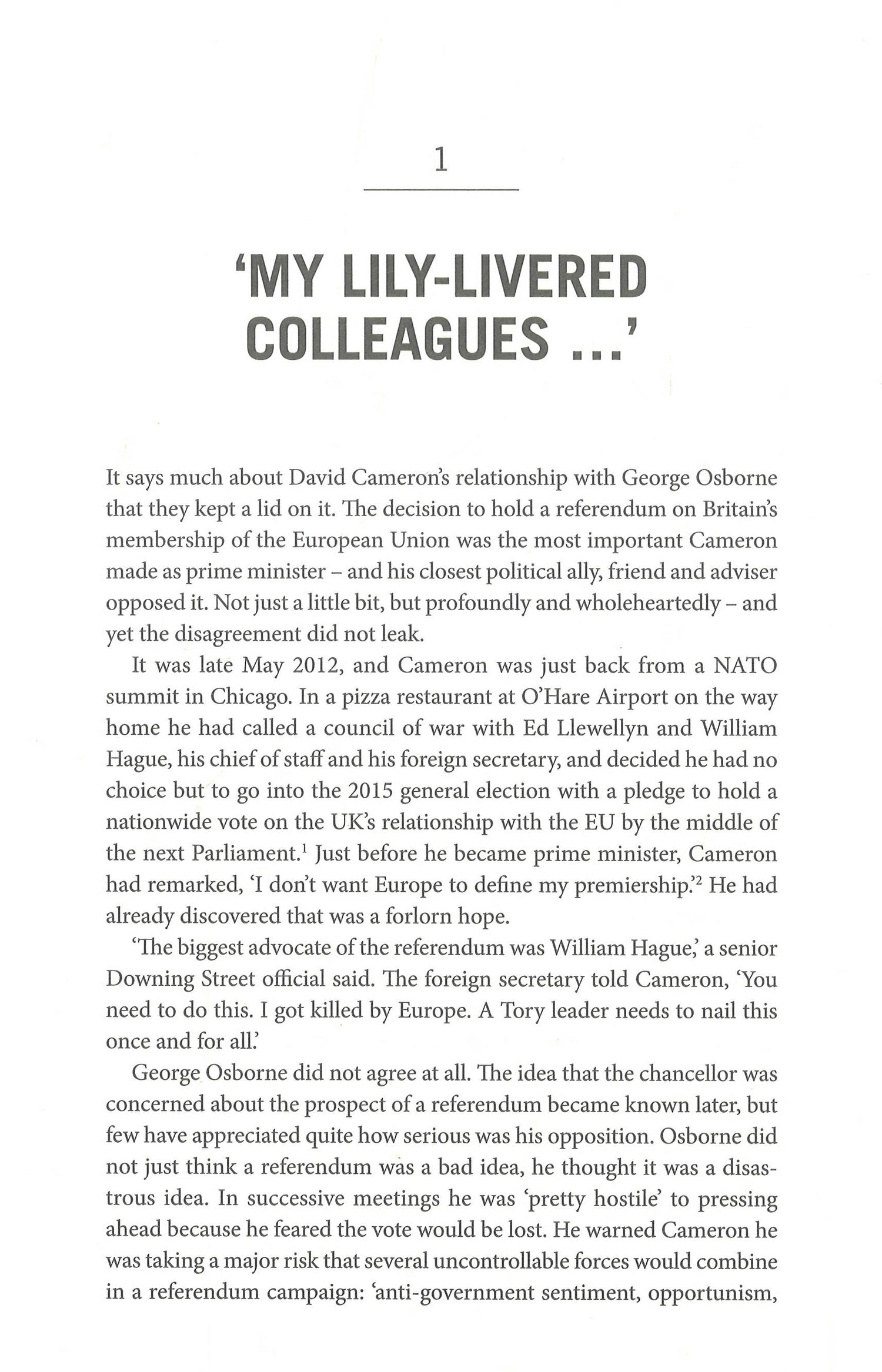 The only book to tell the full story of how and why Britain voted to leave the EU.Based on unrivalled access to all the key politicians and their advisors – including Boris Johnson, Michael Gove, George Osborne, Nigel Farage and Dominic Cummings, the mastermind of Vote Leave – Tim Shipman has written a political history that reads like a thriller, and offers a gripping, day-by-day account of what really happened behind-the-scenes in Downing Street, both Leave campaigns, the Labour Party, Ukip and Britain Stronger in Europe.Shipman gives his readers a ringside seat on how decisions were made, mistakes justified and betrayals perpetrated. Filled with stories, anecdotes and juicy leaks the book does not seek to address the rights and wrongs of Brexit but to explore how and why David Cameron chose to take the biggest political gamble of his life and explain why he lost.This is a story of calculation, attempted coups, individuals torn between principles and loyalty. All the events are here – from David Cameron’s pledge to hold a referendum, through to the campaign itself, his resignation as prime minister, the betrayals and rivalries that occurred during the race to find his successor to the arrival of Theresa May in Downing Street as Britain’s second female prime minister.All Out War is a book about leaders and their closest aides, the decisions they make and how and why they make them, as well as how they feel when they turn out to be wrong. It is about men who make decisions that are intellectually consistent and – by their own measure – morally sound that are simultaneously disastrous for themselves and those closest to them. It is about how doing what you know has worked before doesn’t always work again. Most of all it is about asking the question: how far are you prepared to go to win?