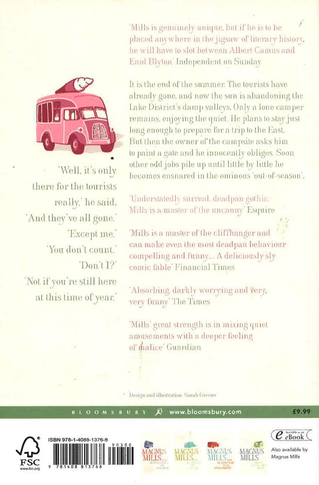 It is the end of the summer. The tourists have already gone, and now the sun is abandoning the Lake District's damp valleys. Only a lone camper remains, enjoying the quiet. He plans to stay just long enough to prepare for a trip to the East. But then the owner of the campsite asks him to paint a fence and he innocently obliges. Soon other odd jobs pile up until little by little he becomes ensnared in the ominous 'out-of-season'.