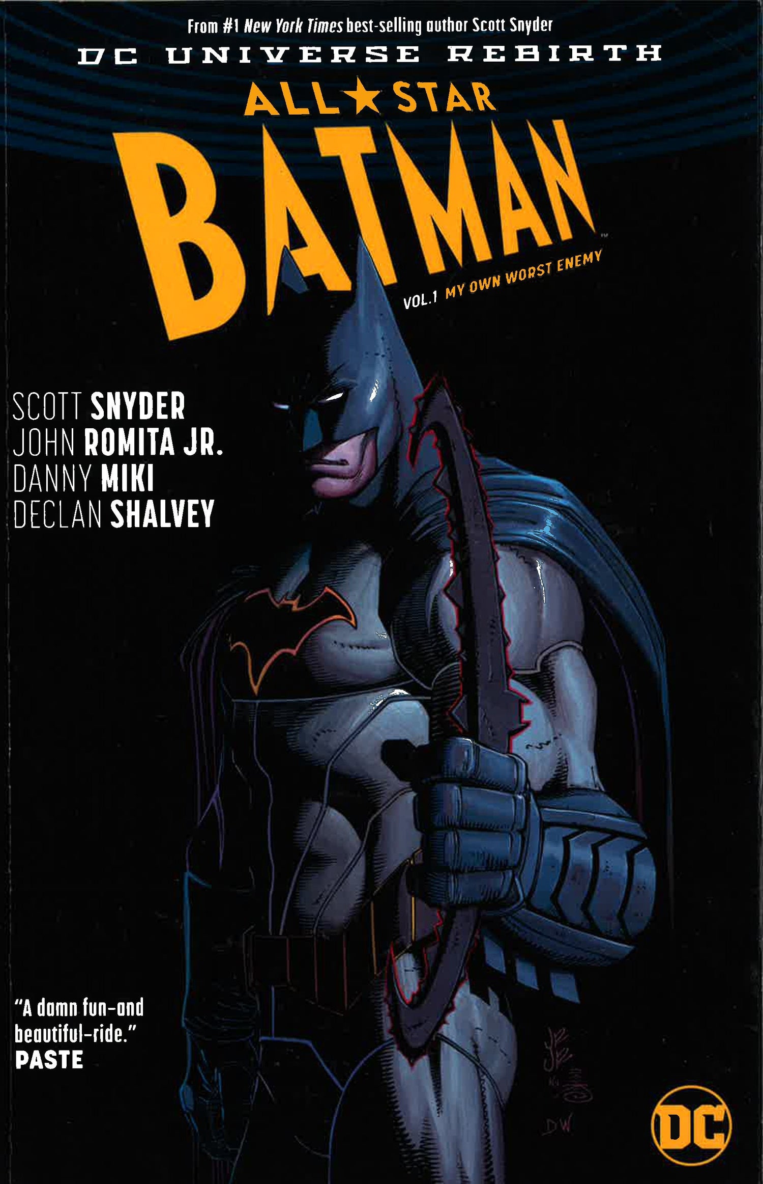 From the #1 NEW YORK TIMES best-selling author of BATMAN, Scott Snyder, comes his newest Dark Knight project as a part of DC Universe Rebirth, ALL-STAR BATMAN VOL. 1: MY OWN WORST ENEMY! Snyder is one of the most critically acclaimed authors in the comics world, with titles that include the genre-defining BATMAN VOL. 1: THE COURT OF OWLS, as well as BATMAN: BLACK MIRROR and AMERICAN VAMPIRE. But this time, he teams with Eisner Award-winning illustrator and comics legend John Romita Jr. (AVENGERS, THE DARK KNIGHT RETURNS: THE LAST CRUSADE) and critically acclaimed artist Declan Shalvey (MOON KNIGHT)!