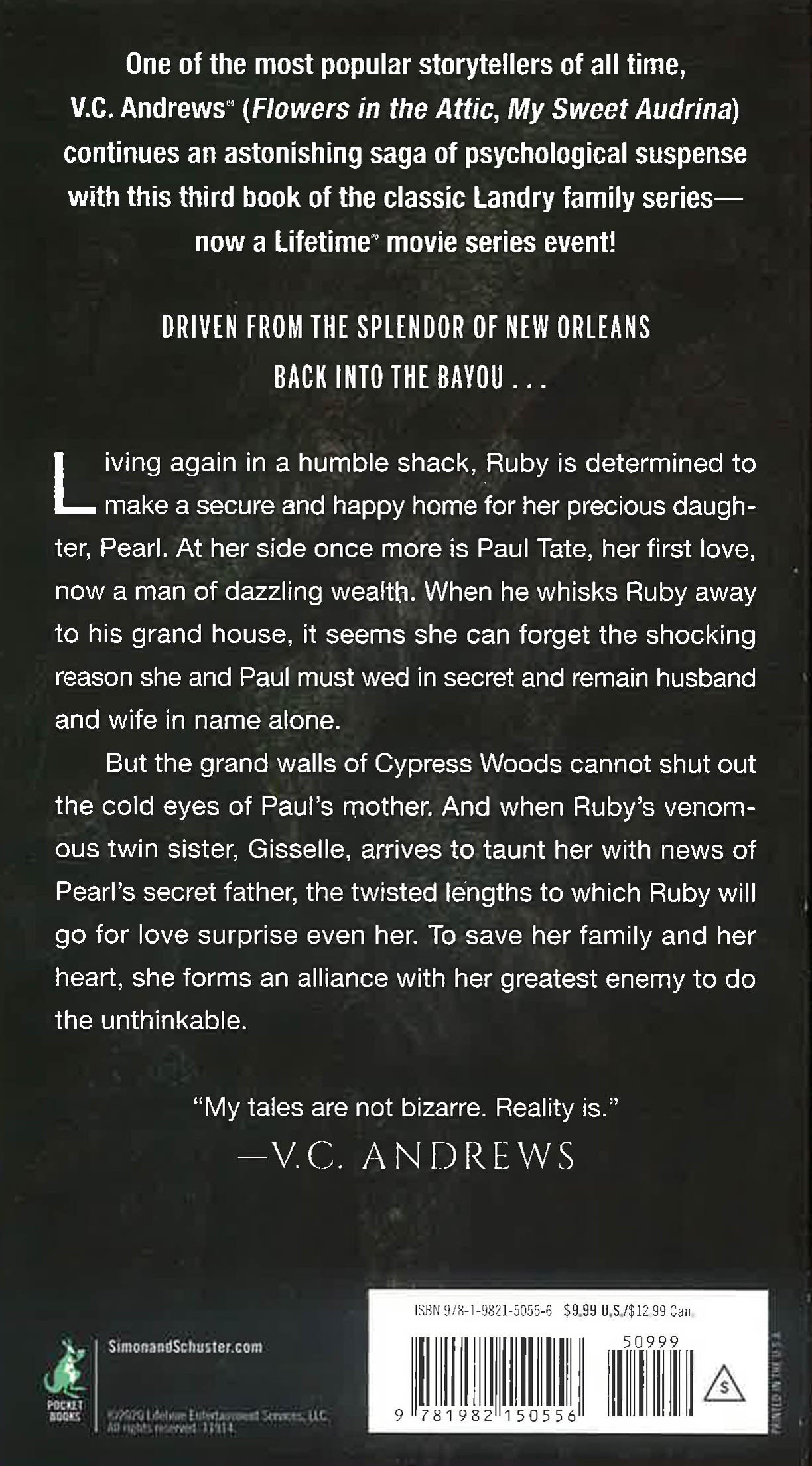 One of the most popular storytellers of all time, V.C. Andrews (Flowers in the Attic, My Sweet Audrina) continues an astonishing saga of psychological suspense with this third book of the Landry Family series—soon to be a Lifetime movie! Driven from the ornate Dumas Mansion back to her beloved bayou, Ruby struggles to begin her life anew in this atmospheric and thrilling novel.