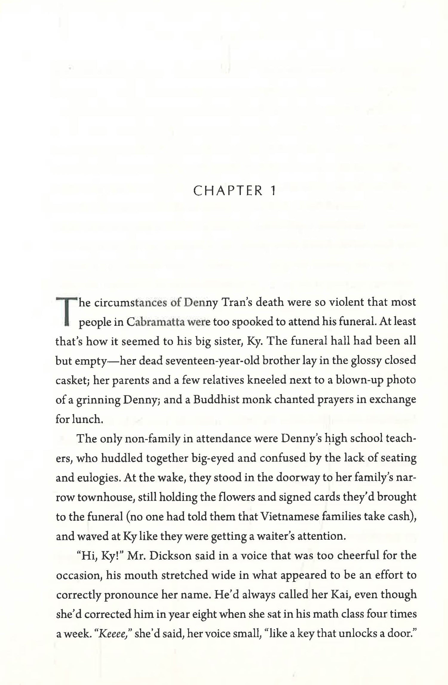 Just let him go. These are the words Ky Tran will forever regret. The words she spoke when her parents called to ask if they should let her younger brother Denny out to celebrate his high school graduation with friends. That night, Denny--optimistic, guileless, brilliant Denny--is brutally murdered inside a busy restaurant in the Sydney suburb of Cabramatta, a refugee enclave facing violent crime, an indifferent police force, and the worst heroin epidemic in Australian history.