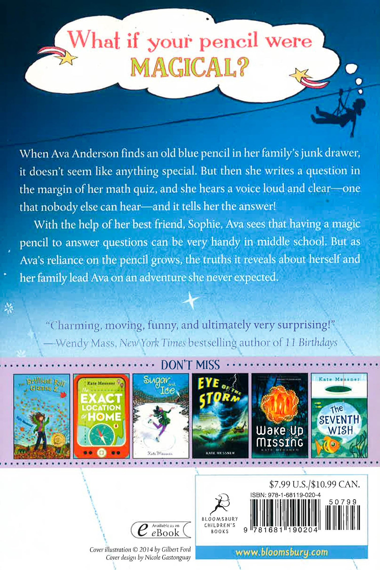 "A charming, moving, funny, and ultimately very surprising story." --Wendy Mass, New York Times bestselling author of 11 Birthdays What if your pencil had all the answers? Would you ace every test? Would you know what your teachers were thinking? When Ava Anderson finds a scratched up pencil, she doodles like she would with any other pencil. But when she writes a question in the margin of her math quiz, she hears a clear answer in a voice no one else seems to hear. With the help of her friend Sophie, Ava figures out that the pencil will answer factual questions only--those with definite right or wrong answers--but won't predict the future. Ava and Sophie discover all kinds of uses for the pencil, and Ava's confidence grows with each answer. But it's getting shorter with every sharpening, and when the pencil reveals a scary truth about Ava's family, she realizes that sometimes the bravest people are the ones who live without all the answers . . .