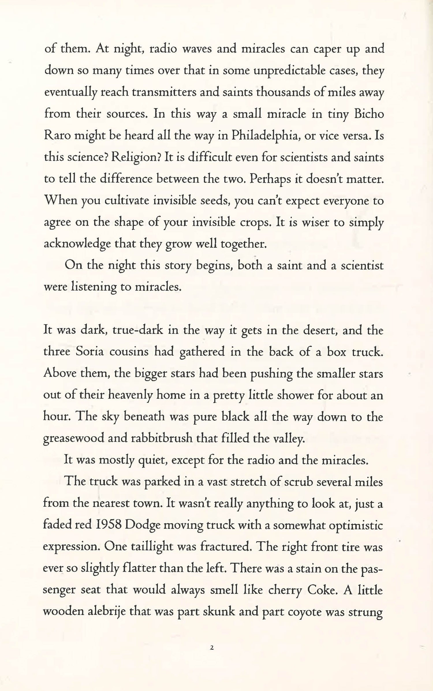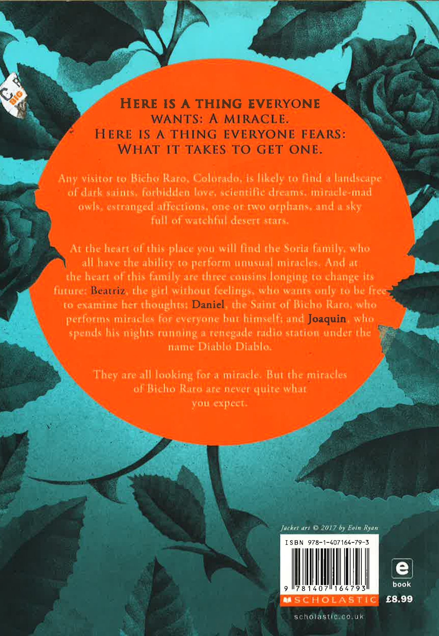 Here is a thing everyone wants: A miracle. Here is a thing everyone fears: What it takes to get one. Any visitor to Bicho Raro, Colorado is likely to find a landscape of dark saints, forbidden love, scientific dreams, miracle-mad owls, estranged affections, one or two orphans, and a sky full of watchful desert stars. At the heart of this place you will find the Soria family, who all have the ability to perform unusual miracles. And at the heart of this family are three cousins longing to change its future: Beatriz, the girl without feelings, who wants only to be free to examine her thoughts; Daniel, the Saint of Bicho Raro, who performs miracles for everyone but himself; and Joaquin, who spends his nights running a renegade radio station under the name Diablo Diablo. They are all looking for a miracle. But the miracles of Bicho Raro are never quite what you expect. Maggie Stiefvater has been called "a master storyteller" by USA Today and "wildly imaginative" by Entertainment Weekly. Now, with All the Crooked Saints, she gives us the extraordinary story of an extraordinary family, a masterful tale of love, fear, darkness, and redemption.