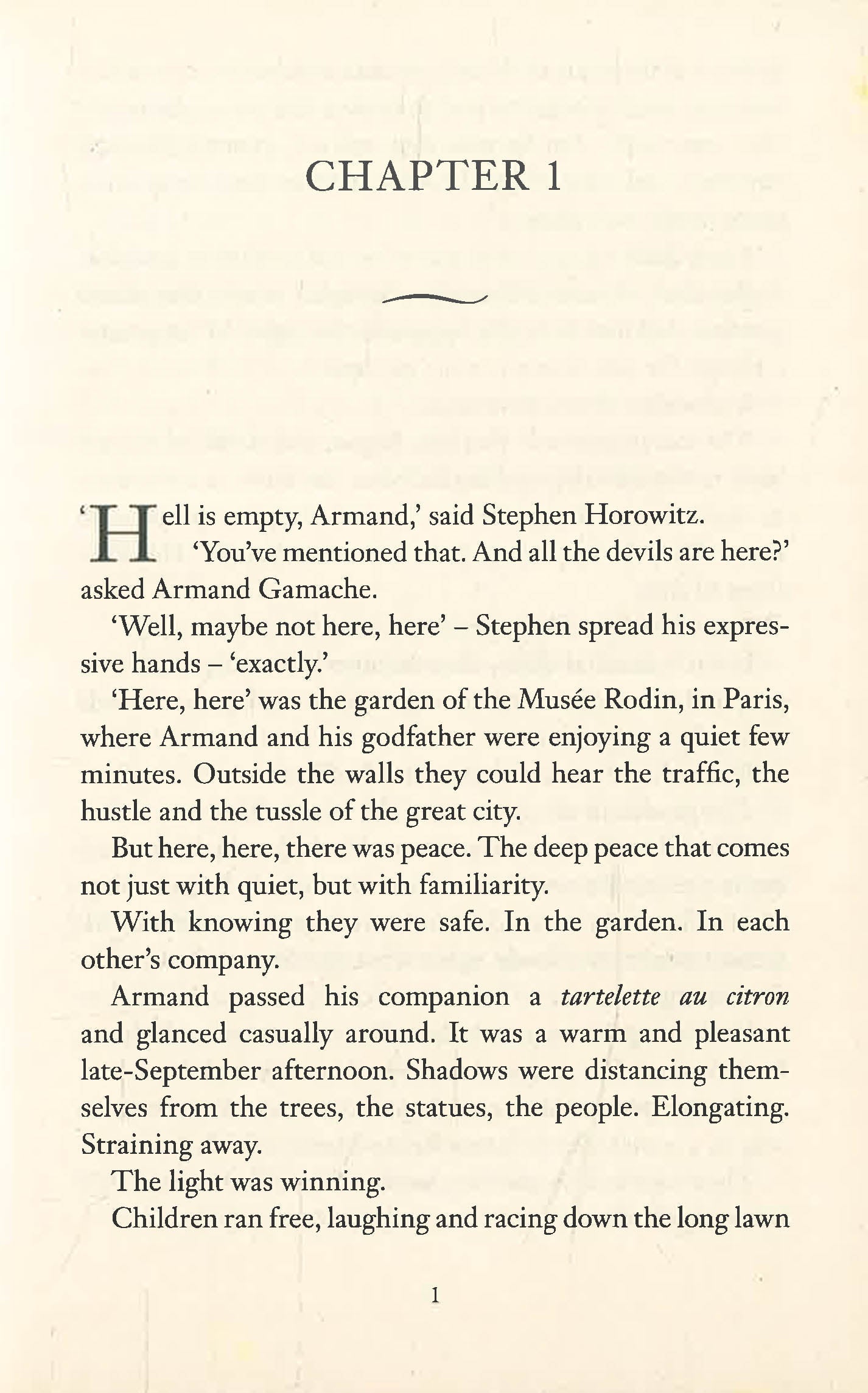 On their first night in Paris, the Gamaches gather for a family dinner with Armand's godfather, the billionaire Stephen Horowitz. But the evening ends in horror when Stephen is knocked down and critically injured in what Armand is convinced is no accident, but a deliberate attempt on an elderly man's life.