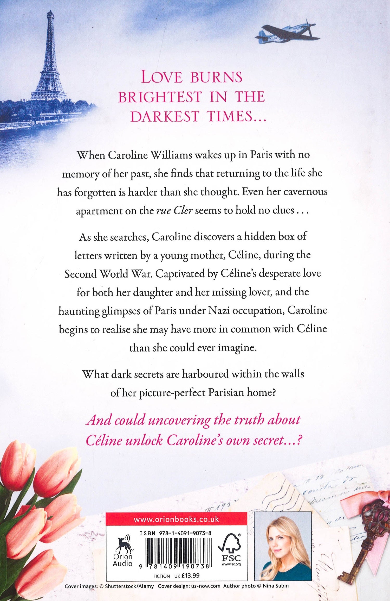 Love burns brightest in the darkest timesWhen Caroline Williams wakes up in Paris with no memory of her past, she finds that returning to the life she has forgotten is harder than she thought. Even her cavernous apartment on rue Cler seems to hold no clues...As she searches, Caroline discovers a hidden stack of letters written by a young mother, Celine, during the Second World War. Captivated by Celine's desperate love for both her daughter and her missing lover, and the haunting glimpses of Paris under Nazi occupation, Caroline begins to realise she may have more in common with Celine that she could ever imagine.What dark secrets are harboured within the walls of her picture-perfect Parisian home? And could uncovering the truth about Celine unlock Caroline's own...?The compelling and evocative new historical novel from the international bestselling author Sarah Jio. Perfect for fans of The Key by Kathryn Hughes, The Parisians by Marius Gabriel and The Paris Secret by Lily Graham.