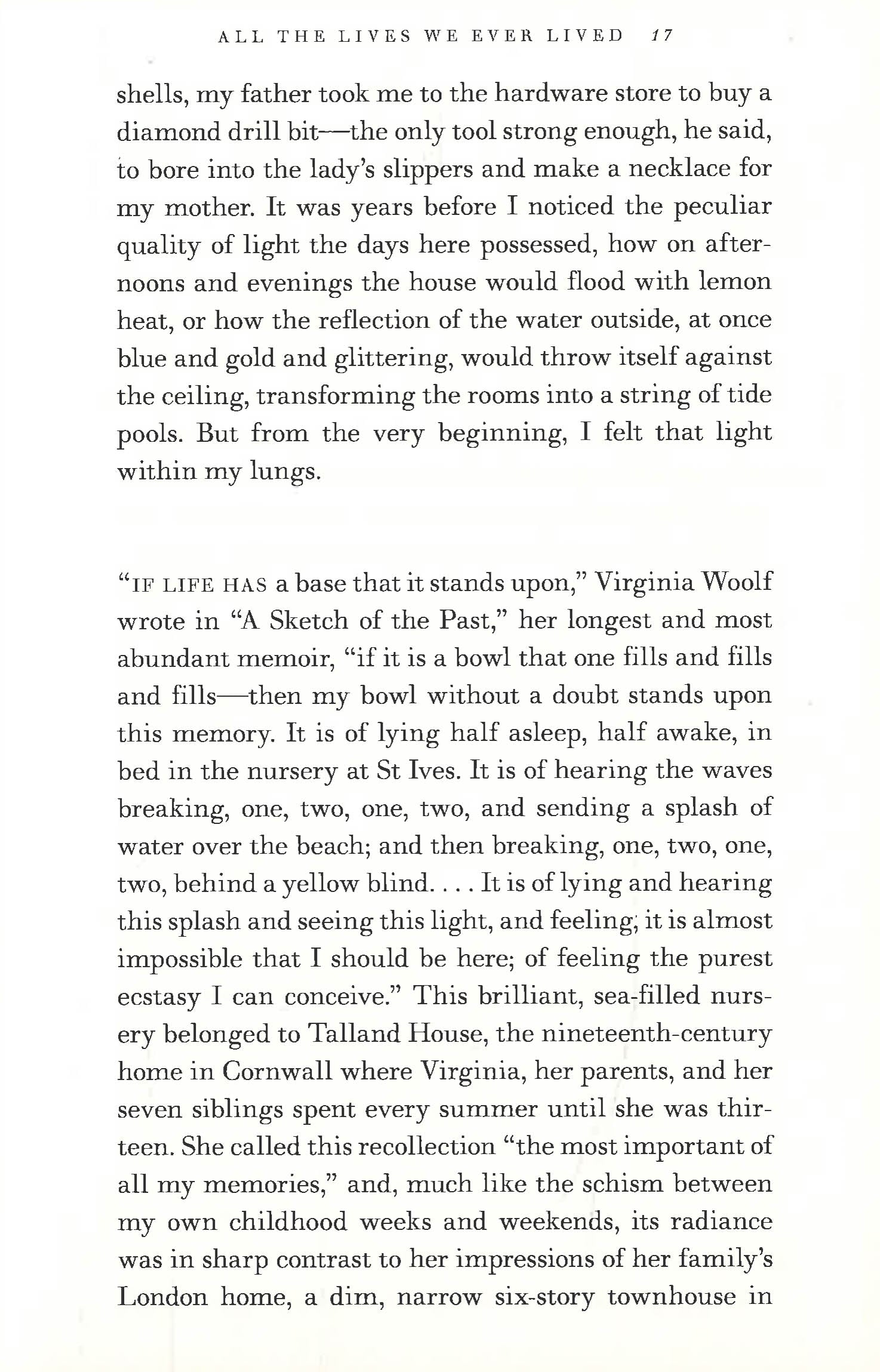 Braiding memoir, literary criticism and biography, Smyth's story explores universal questions about family, loss and homecoming. Through her inventive, highly personal reading of To the Lighthouse, Smyth guides us towards a new vision of Woolf's most demanding and rewarding novel. All the Lives We Ever Lived is a wholly original debut: a love letter from a daughter to her father, and from a reader to her most cherished author.