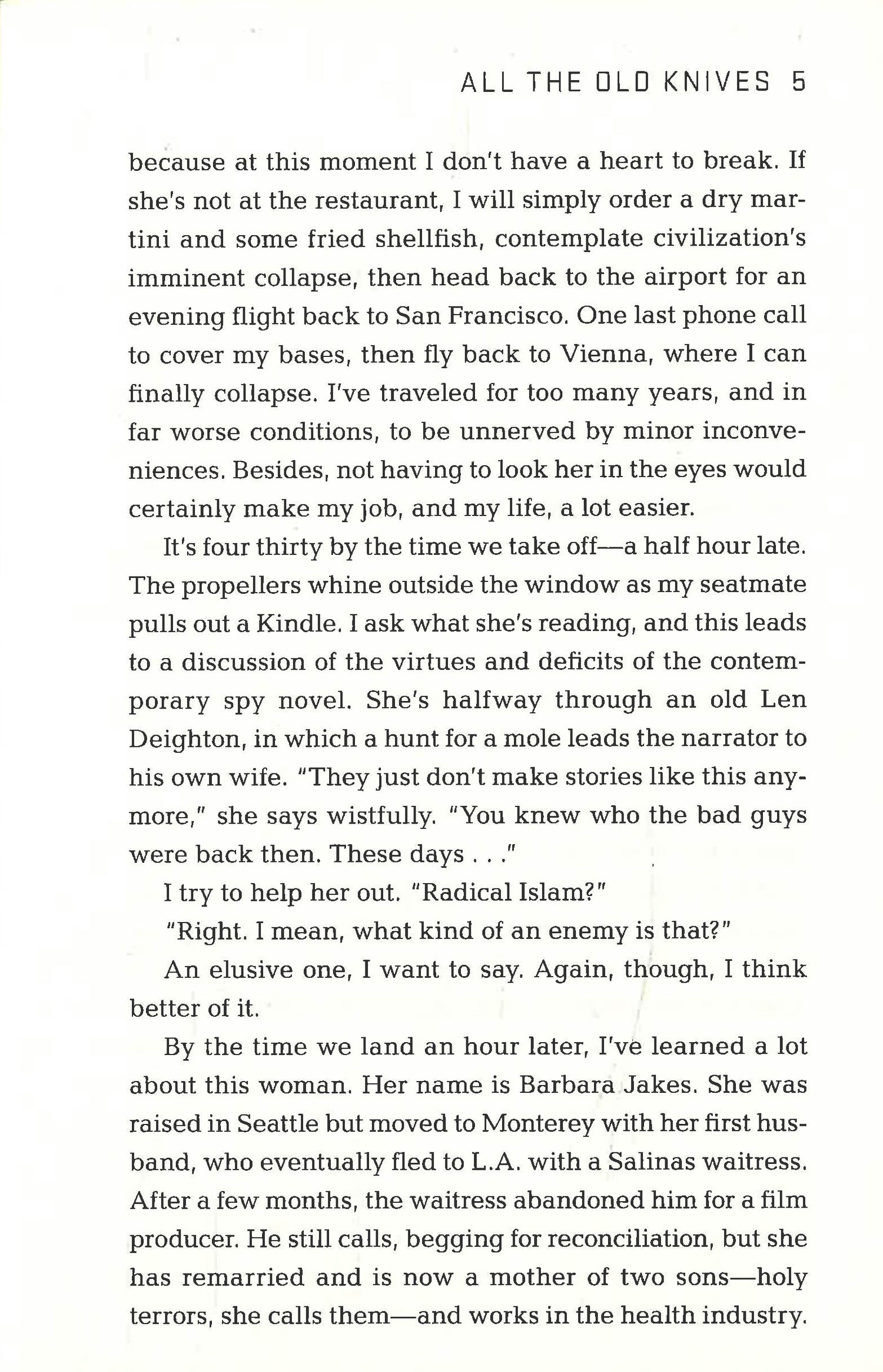 But neither of them can forget that long-ago question: Had their agent been compromised? If so, how? Each also wonders what role tonight's dinner companion might have played in the way the tragedy unfolded six years ago.