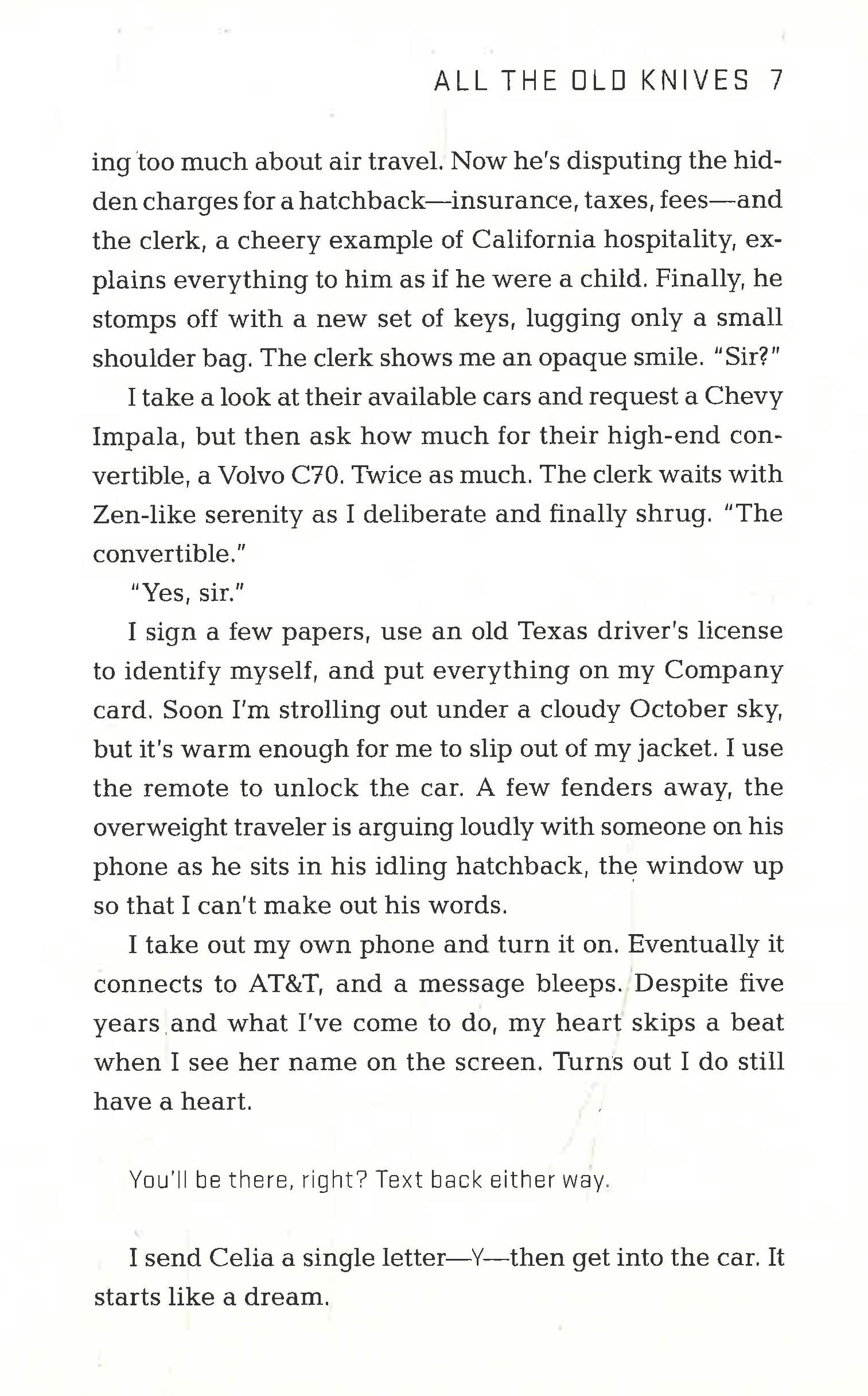 Two of the CIA's case officers in Vienna, Henry Pelham and Celia Harrison, were lovers at the time, and on the night of the hostage crisis Celia decided she'd had enough. She left the agency, married and had children, and is now living an ordinary life in the idyllic town of Carmel-by-the-Sea. Henry is still a case officer in Vienna, and has traveled to California to see her one more time, to relive the past, maybe, or to put it behind him once and for all.