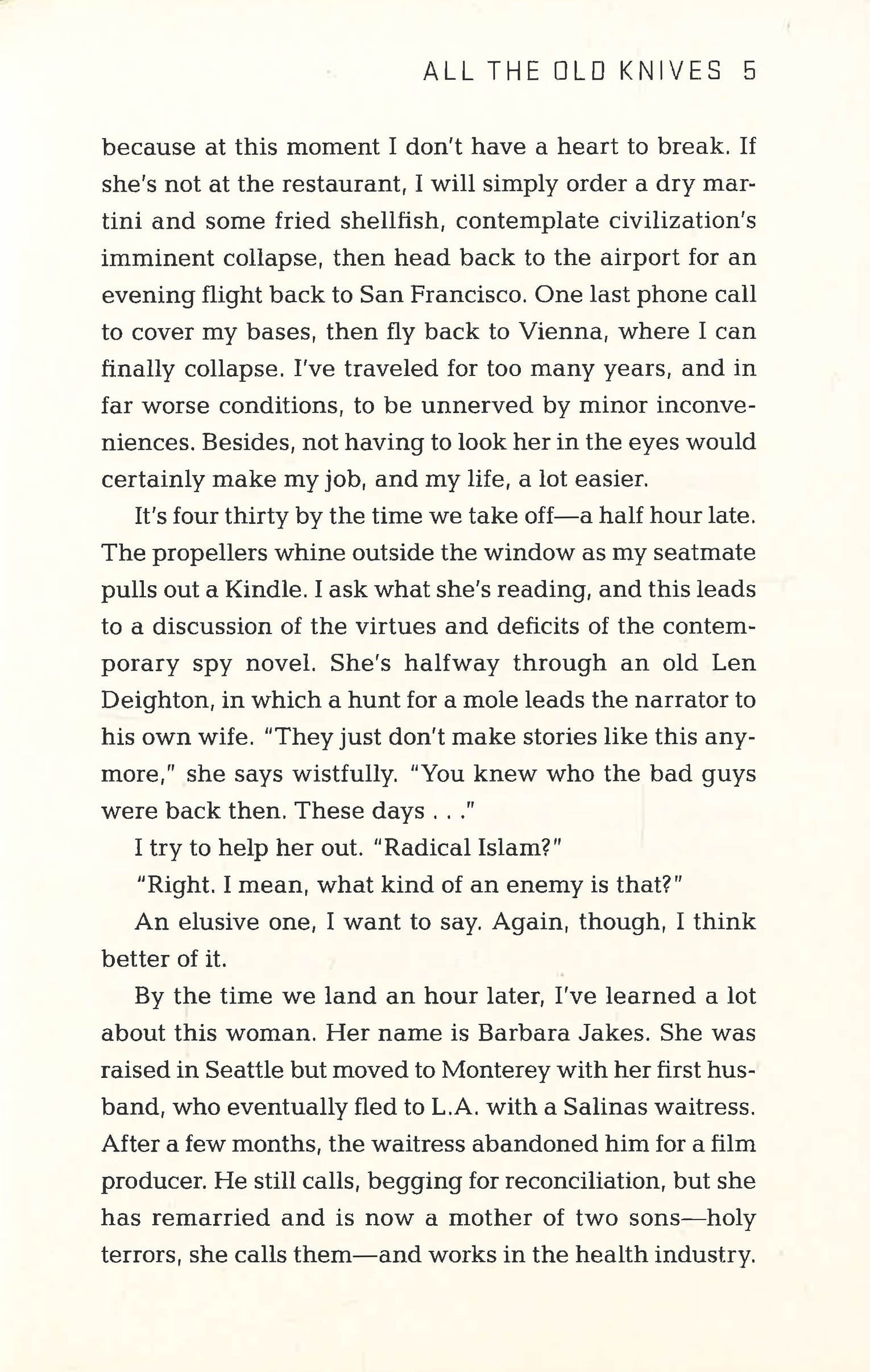 But neither of them can forget that long-ago question: Had their agent been compromised? If so, how? Each also wonders what role tonight's dinner companion might have played in the way the tragedy unfolded six years ago.
