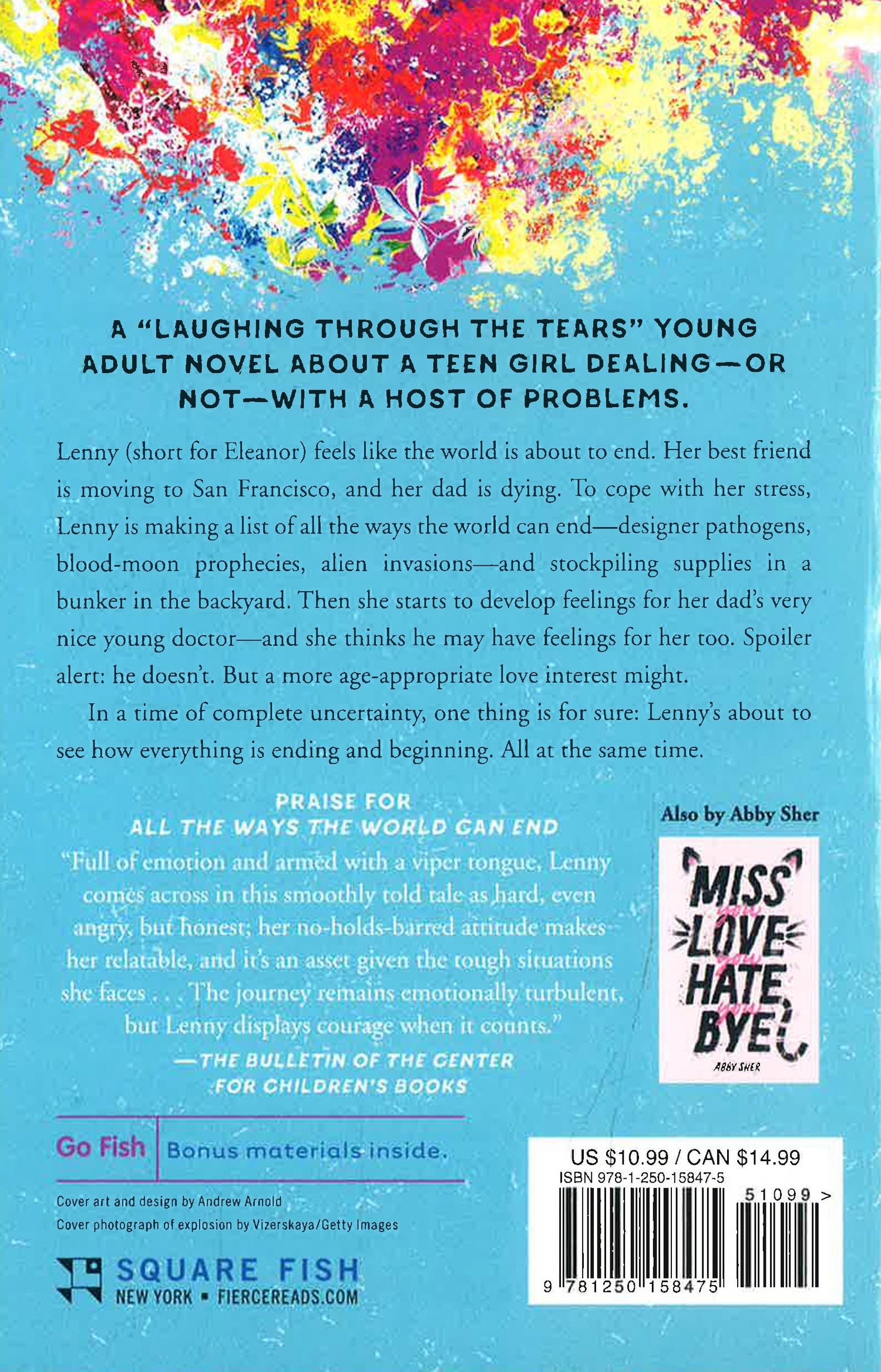 Lenny (short for Eleanor) feels like the world is about to end. Her best friend is moving to San Francisco and her dad is dying. To cope with her stress Lenny is making a list of all the ways the world can end--designer pathogens, blood moon prophecies, alien invasion--and stockpiling supplies in a bunker in the backyard.