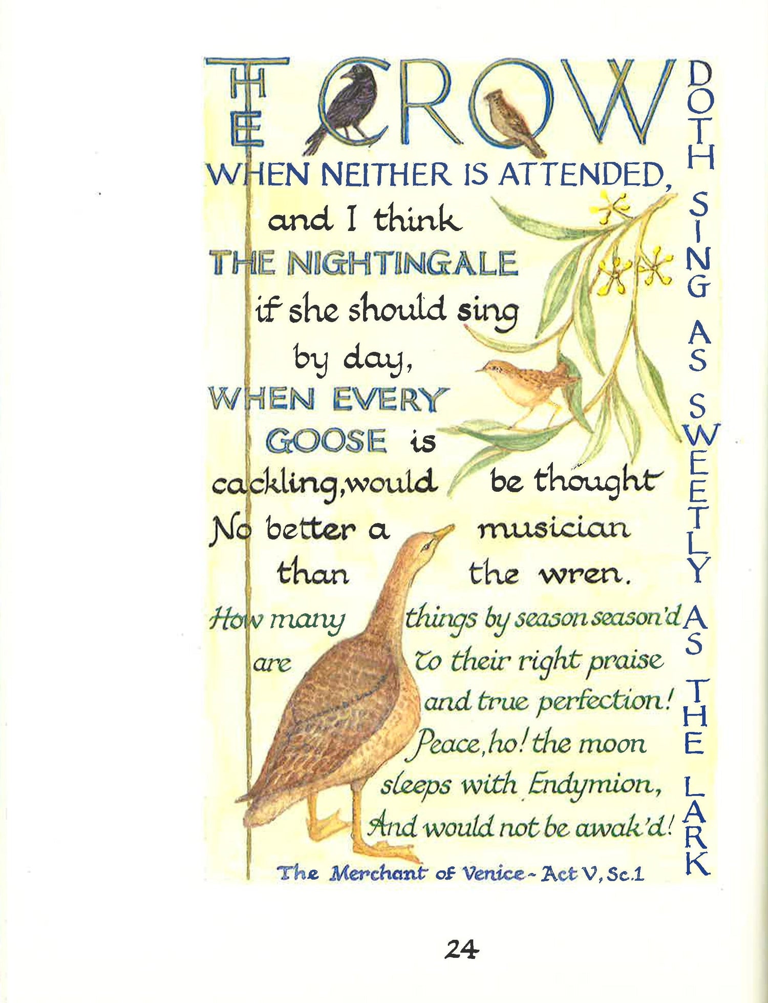 As an introduction to Shakespeare, this presentation of extracts from Shakespeare's greatest plays and sonnets should capture the imagination of parents and children alike. Shakespeare presents a gamut of human emotions - love, humour, murder, sorcery, violence and greatness. Each text is stylistically distinct, and the skilful use of calligraphy heightens and underscores the phonetic and dramatic qualities of Shakespeare's verse. The book explores four themes: young love, laughter and innocence; the dark and the sinister in human nature; war; and the choices facing us in life, as represented by the three caskets in "A Merchant of Venice".