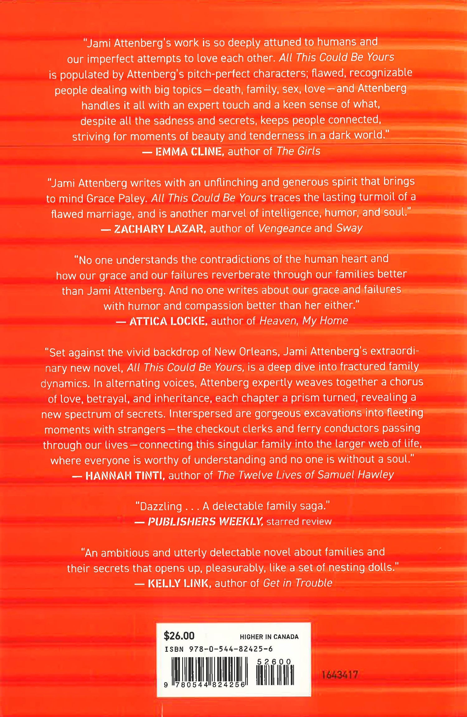 ALL THIS COULD BE YOURS is a timely, piercing exploration of what it means to be caught in the web of a toxic man who abused his power; it shows how those webs can tangle a family for generations and what it takes to—maybe, hopefully—break free. With her signature “sparkling prose” (Marie Claire) and incisive wit, Jami Attenberg deftly explores one of the most important subjects of our age.