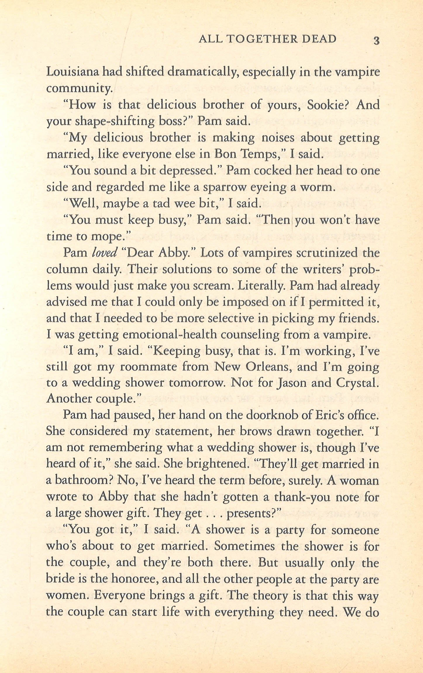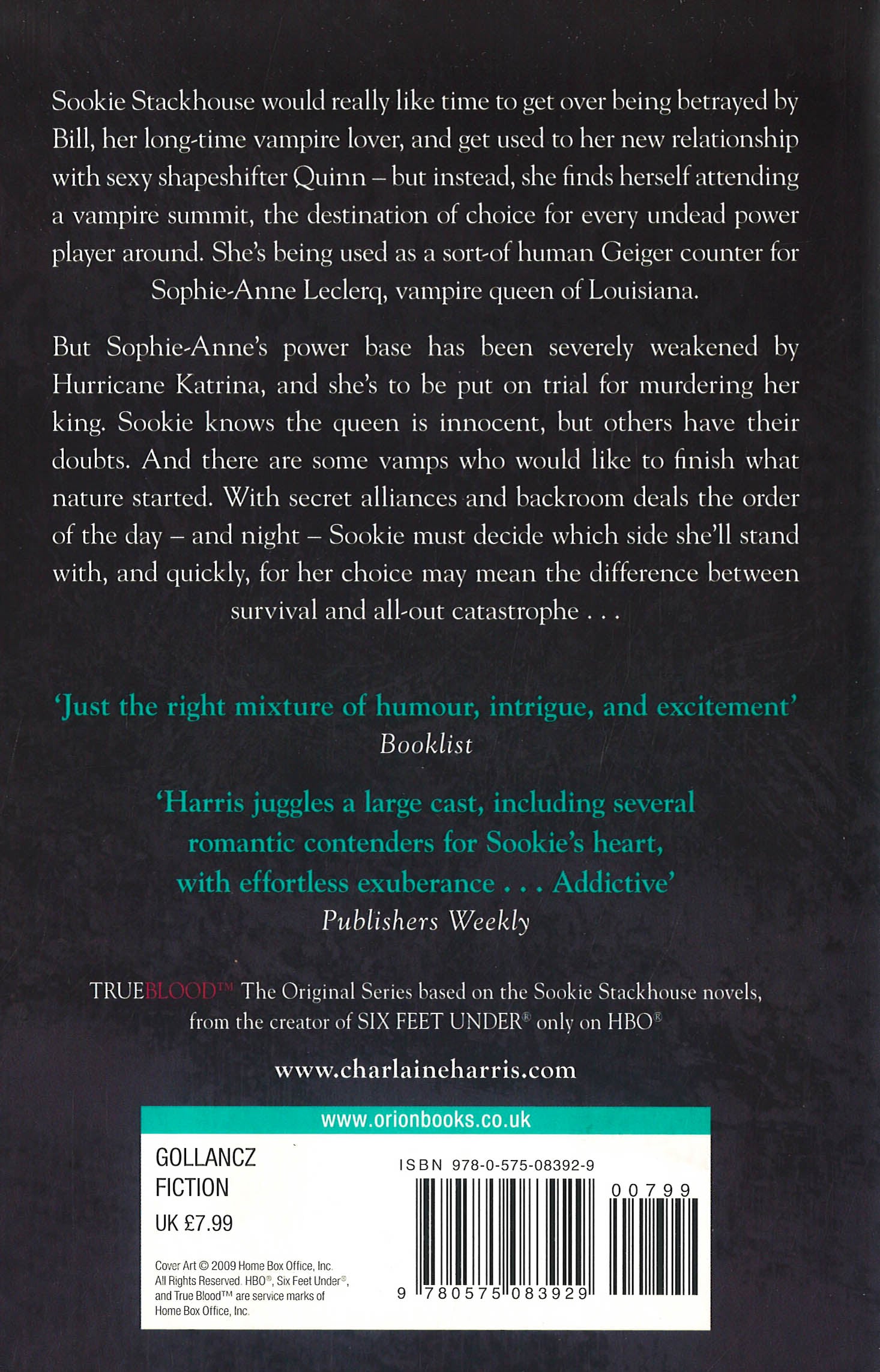 Betrayed by her longtime vampire love, and with a new man - a shapeshifter - in her life, Sookie's got quite enough to deal with without having to contend with the long-awaited vampire summit . . . Sookie's beginning to get used to being surrounded by all varieties of undead, changeling, shapeshifting and other supernatural beings - but even she has her limits. She'd really like to take a while to get over being betrayed by Bill, her long-time vampire lover, and get used to her new relationship with the sexy shapeshifter Quinn - but instead, she finds herself attending the long-planned vampire summit, the destination of choice for every undead power player around, as a sort-of human 'Geiger counter' for Sophie-Anne Leclerq, vampire queen of Louisiana. But the job is fraught with difficulties. Sophie-Anne's power base has been severely weakened by Hurricane Katrina, and she's about to be put on trial during the event for murdering her king. Sookie knows the queen is innocent, but she's hardly prepared for other shocking murders: it looks like there are some vamps who would like to finish what nature started. With secret alliances and backroom deals the order of the day - and night - Sookie must decide which side she'll stand with, and quickly, for her choice may mean the difference between survival and all-out catastrophe.