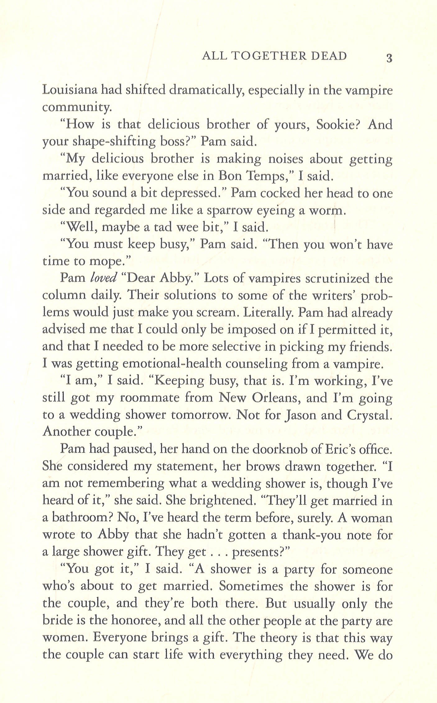 Louisiana cocktail waitress Sookie Stackhouse has her hands full dealing with every sort of undead and paranormal creature imaginable. And after being betrayed by her longtime vampire love, Sookie must not only deal with a new man in her life--the shapeshifter Quinn--but also contend with the long-planned vampire summit. The summit is a tense situation. The vampire queen of Louisiana is in a precarious position, her power base weakened by hurricane damage to New Orleans. And there are some vamps who would like to finish what nature started. Soon, Sookie must decide what side she'll stand with. And her choice may mean the difference between survival and all-out catastrophe.