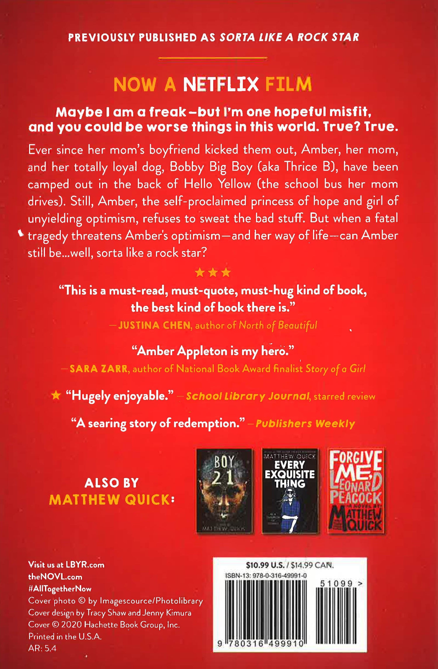 Amber Appleton lives in a bus. Ever since her mom's boyfriend kicked them out, Amber, her mom, and her totally loyal dog, Bobby Big Boy (aka Thrice B) have been camped out in the back of Hello Yellow (the school bus her mom drives). Still, Amber, the self-proclaimed princess of hope and girl of unyielding optimism, refuses to sweat the bad stuff. But when a fatal tragedy threatens Amber's optimism--and her way of life, can Amber continue to be the rock star of hope?