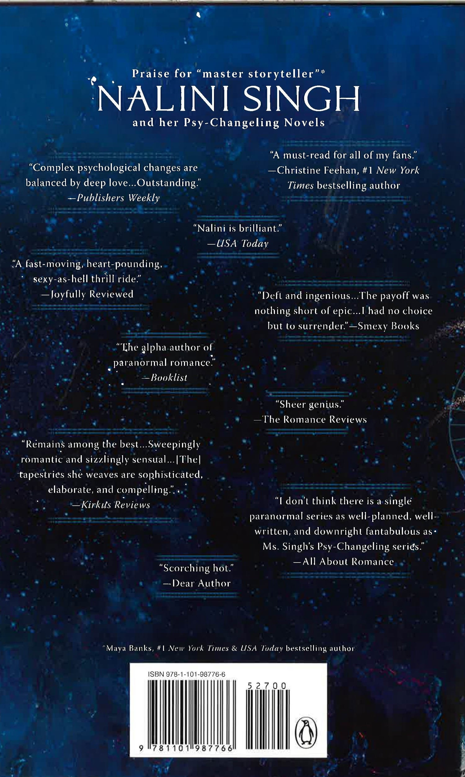 The "unparalleled romantic adventure"* of Nalini Singh's New York Times bestselling series continues as a new dawn begins for the Psy-Changeling world... A staggering transformation has put the Psy, humans, and changelings at a crossroads. The Trinity Accord promises a new era of cooperation between disparate races and groups. It is a beacon of hope held together by many hands: old enemies, new allies, wary loners. But a century of distrust and suspicion can't be so easily forgotten, and it threatens to shatter Trinity from within at any moment. As rival members vie for dominance, chaos and evil gather in the shadows and a kidnapped woman's cry for help washes up in San Francisco, while the Consortium turns its murderous gaze toward a child who is the embodiment of change, of love, of piercing hope: a child who is both Psy...and changeling. To find the lost and protect the vulnerable--and to save Trinity--no one can stand alone. This is a time of loyalty across divisions, of bonds woven into the heart and the soul, of heroes known and unknown standing back to back and holding the line. But is an allegiance of honor even possible with traitors lurking in their midst? *Publishers Weekly on Shards of Hope