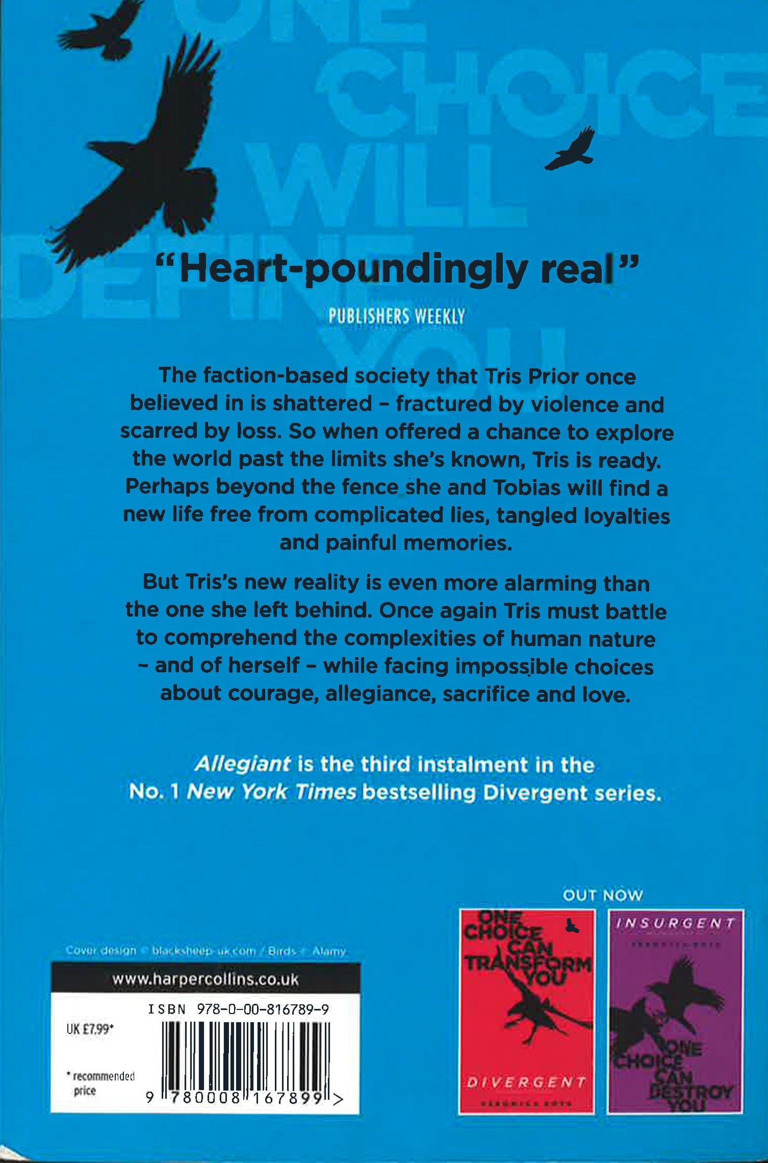 But Tris's new reality is even more alarming than the one she left behind. Old discoveries are quickly rendered meaningless. Explosive new truths change the hearts of those she loves. And once again, Tris must battle to comprehend the complexities of human nature - and of herself - while facing impossible choices about courage, allegiance, sacrifice and love.