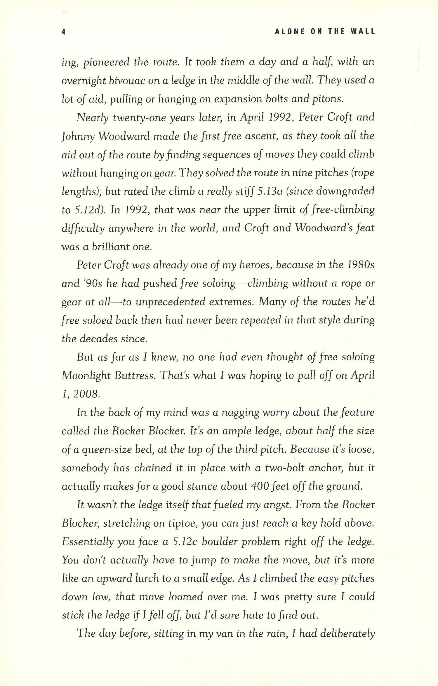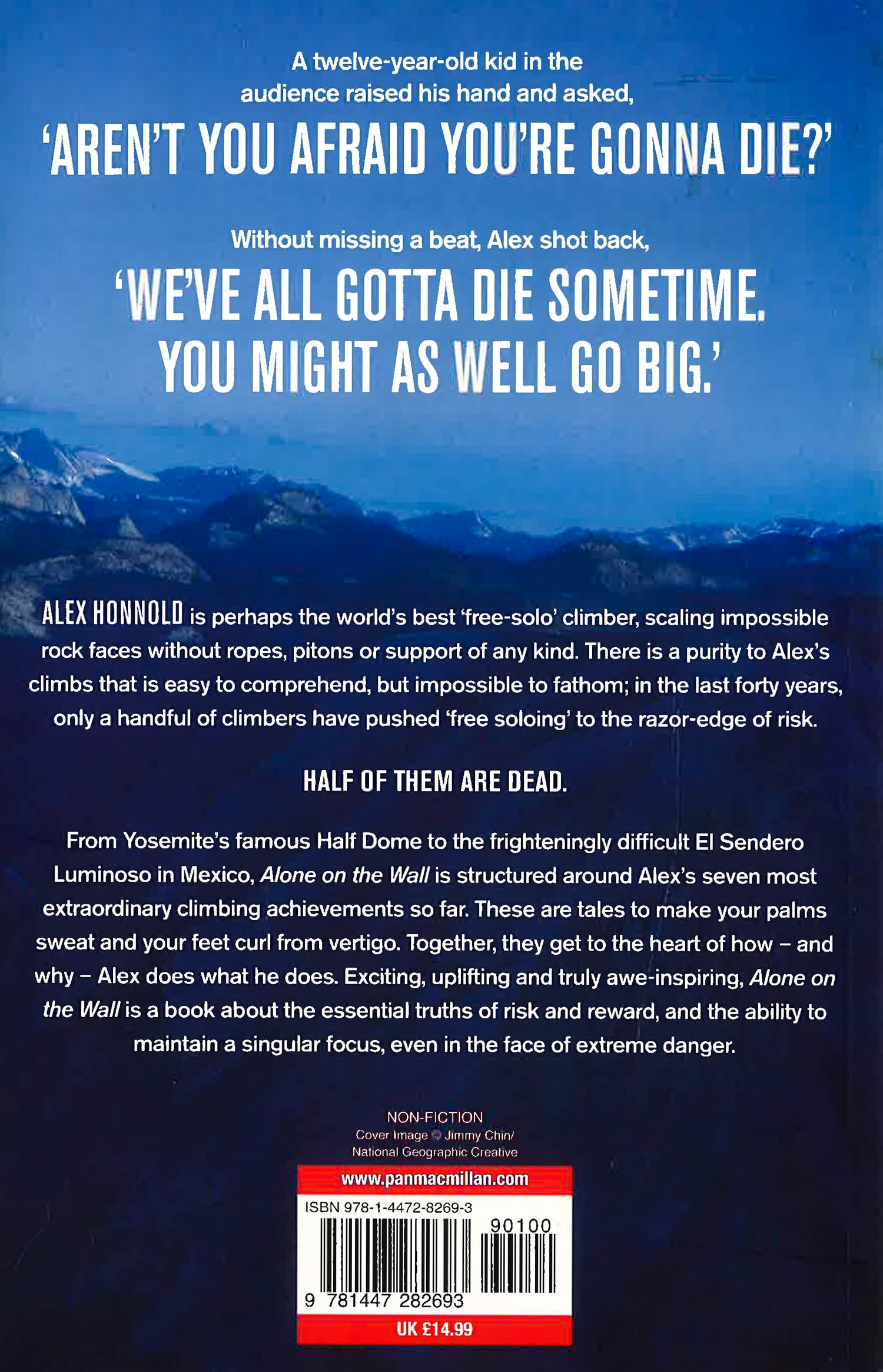 From Yosemite's famous Half Dome to the frighteningly difficult El Sendero Luminoso in Mexico, Alone on the Wall is structured around Alex's seven most extraordinary climbing achievements so far. These are tales to make your palms sweat and your feet curl with vertigo. Together, they get to the heart of how - and why - Alex does what he does. Exciting, uplifting and truly awe-inspiring, Alone on the Wall is a book about the essential truths of risk and reward, and the ability to maintain a singular focus, even in the face of extreme danger.