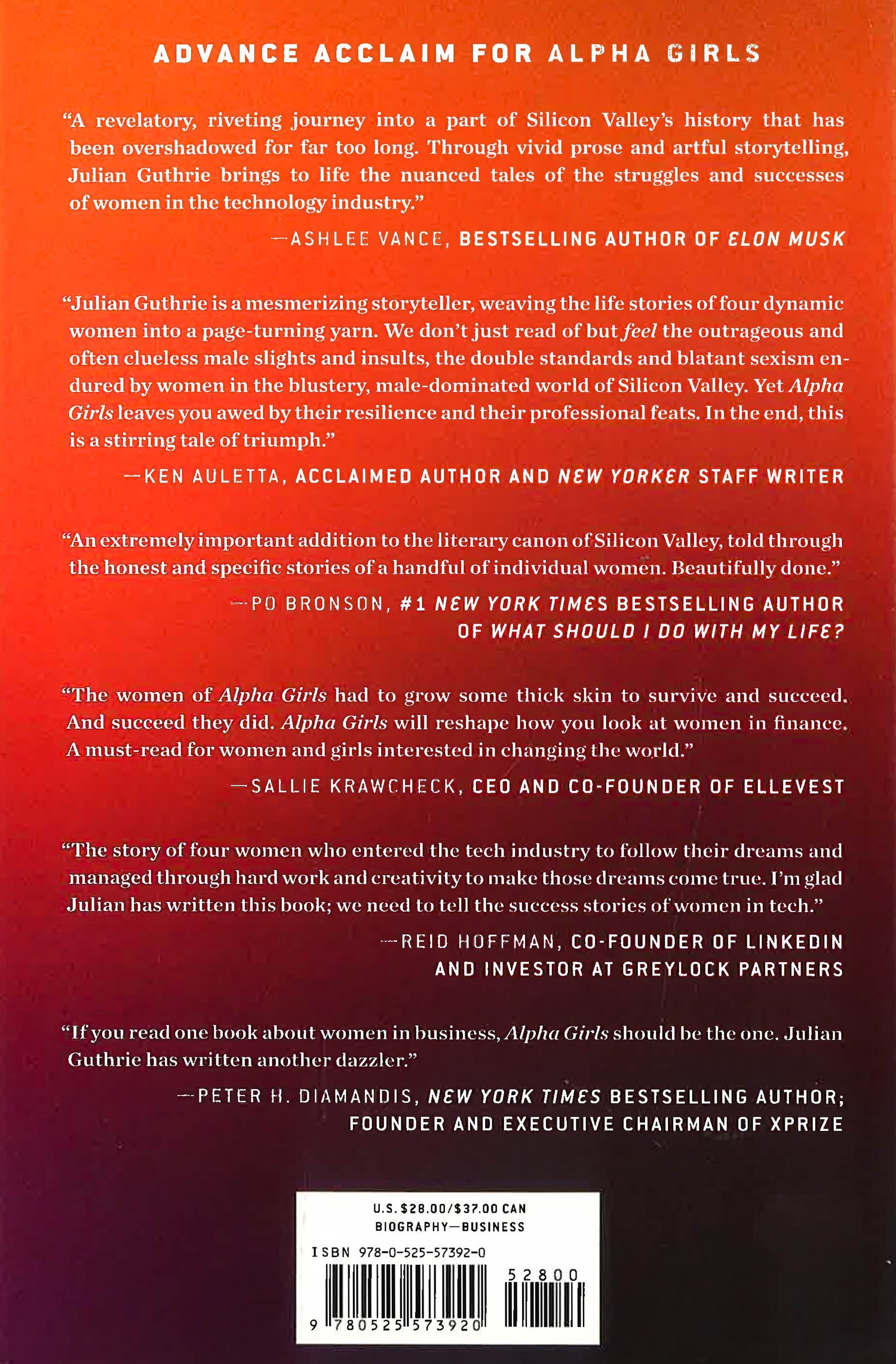 These women, juggling work and family, shaped the tech landscape we know today while overcoming unequal pay, actual punches, betrayals, and the sexist attitudes prevalent in Silicon Valley and in male-dominated industries everywhere. Despite the setbacks, they would rise again to rewrite the rules for an industry they love. In Alpha Girls, Guthrie reveals their untold stories.