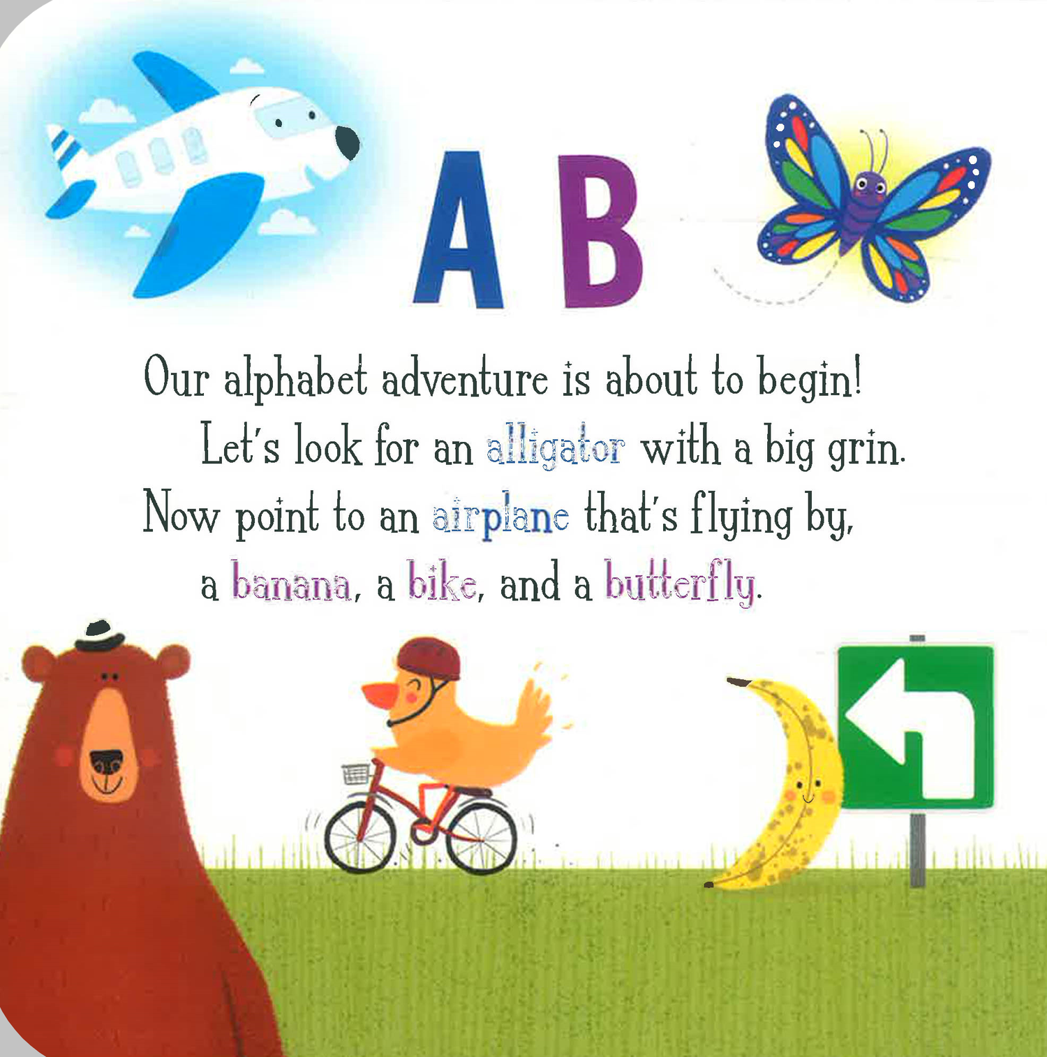 From alligator and astronaut to zebra and zipper, discover everyday objects - and some surprises - from A to Z! With this book you and your little can go through the alphabet while reading fun rhymes and associating words and letters to images. This book is special because: