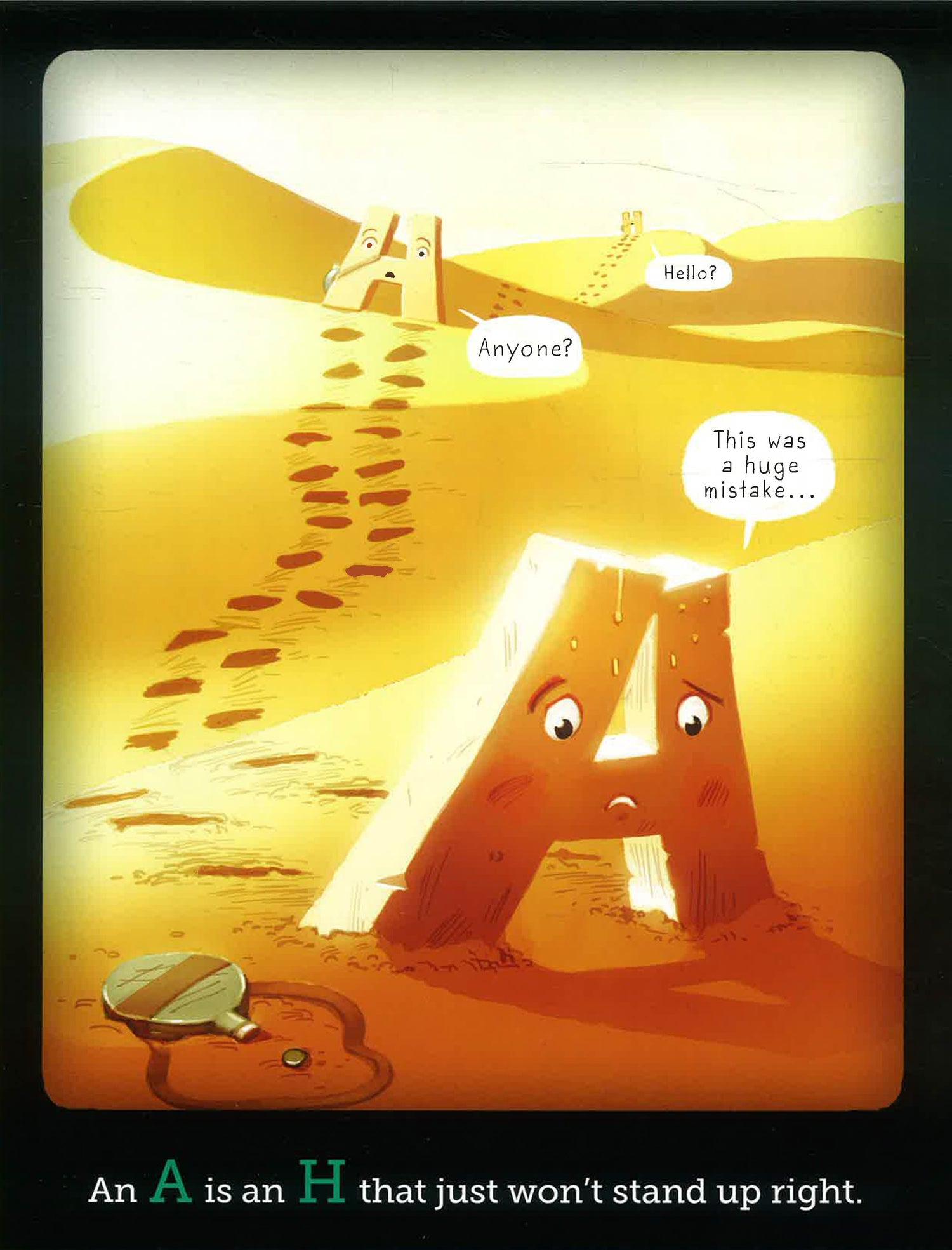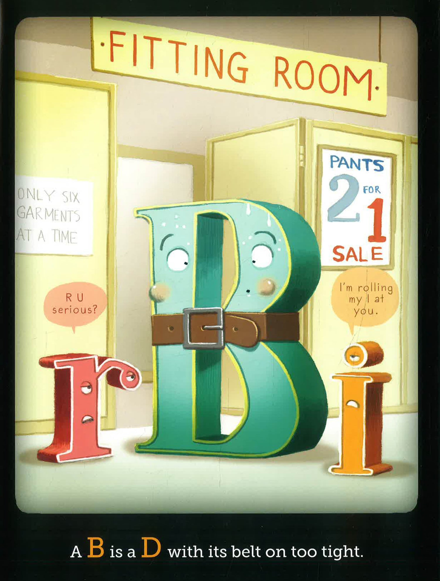 An A is an H that just won't stand up right... A B is a D with its belt on too tight... And a Z is an L in a tug-of-war fight! Twenty-six letters, unique from each other--and yet, every letter looks just like one another! Kind of like...one big family.