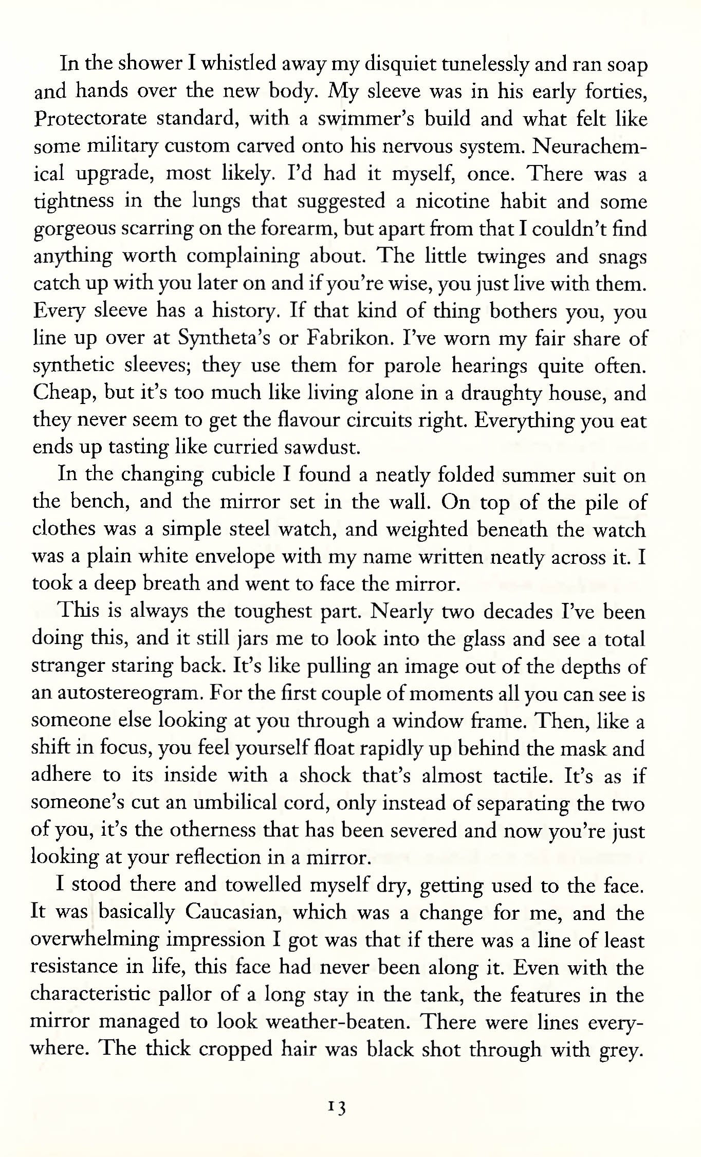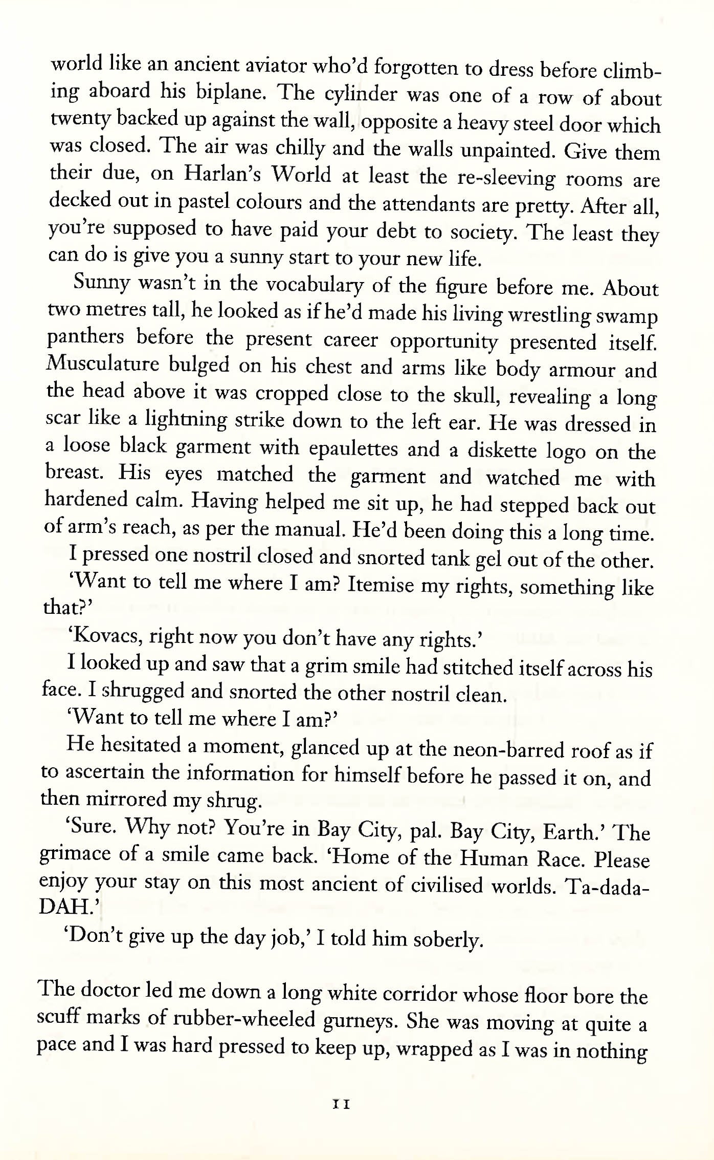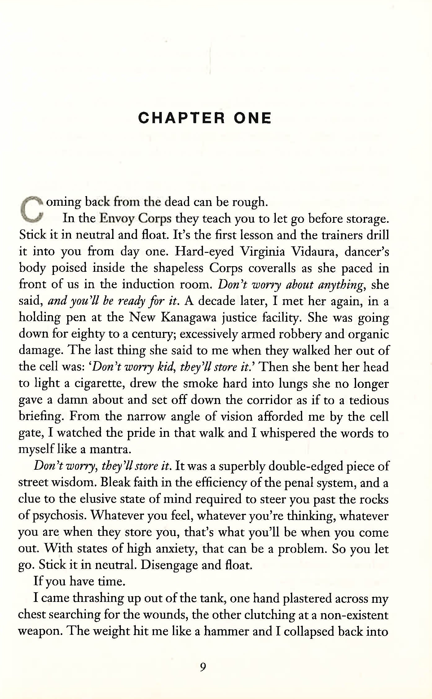 But some things never change. So when ex-envoy, now-convict Takeshi Kovacs has his consciousness and skills downloaded into the body of a nicotine-addicted ex-thug and presented with a catch-22 offer, he really shouldn?t be surprised. Contracted by a billionaire to discover who murdered his last body, Kovacs is drawn into a terrifying conspiracy that stretches across known space and to the very top of society.